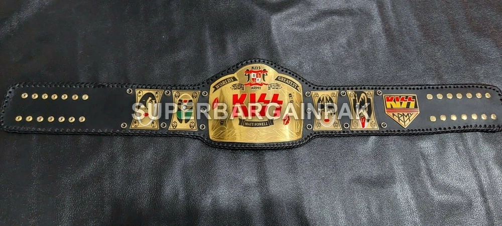 Welcome to our shop ------------------------------------------- We are specialist in manufacturing handmade products:: Our wide range of products include: >>>>Championship Belts WWE | WWF | AEW | UFC | WBC | WCW Product Description *** World Greatest Kiss Championship Wrestling Collectible Belt *** Plate Metal: Brass (Zinc available on request with additional cost) Strap: 100% Leather Largest Waist Size: Fits upto 46'' Belt Length: ~50" Weight: 4.17 lbs | 2.01 Kg Plate Thickness: 2mm (4mm Version available on demand with additional cost) ::The belt is well crafted and manufactured to meet the quality demands of fans:: Get your hands on this marvelous piece now! Note: If you need further details kindly inbox us, we will try to be as responsive as possible. ------------------------------------------- Return Policy: Generally we don't have much complains on our products and we make sure to 100% satisfy our clients. We send the product in well Bubble Wrapped packaging so there is highly unlike chance of getting damaged item. In case there is a damage, we will try to give partial refund or you can ask for full refund within 30 days after returning the belt to origin. NOTE: 1. If you have placed the order by mistake or you have purchased a wrong item then we are not going to refund that. 2. Buyer will pay the shipping fee of returning the belt. ------------------------------------------- Happy Shopping! :)