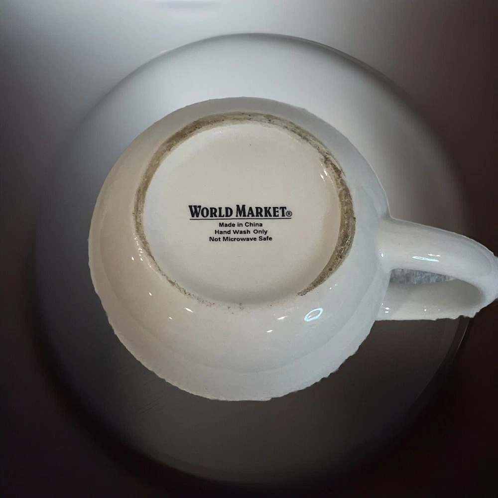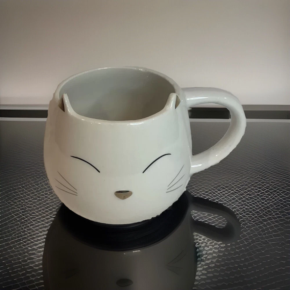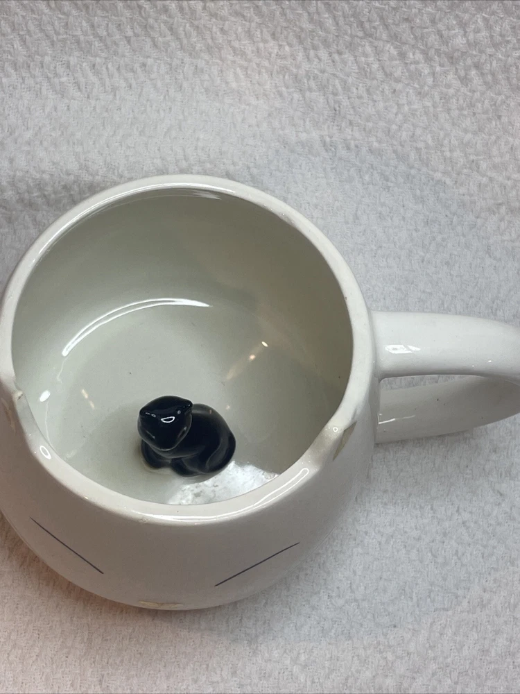 New without box This ceramic coffee mug from World Market features a white cat with a black cat figure hidden inside, adding a touch of novelty to your morning routine. The mug is perfect for cat lovers and collectors, with its unique design and quality material. Made in China, this figural mug is a great addition to your dinnerware and serveware collection, and is perfect for enjoying your favorite hot beverage.