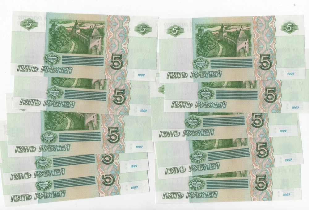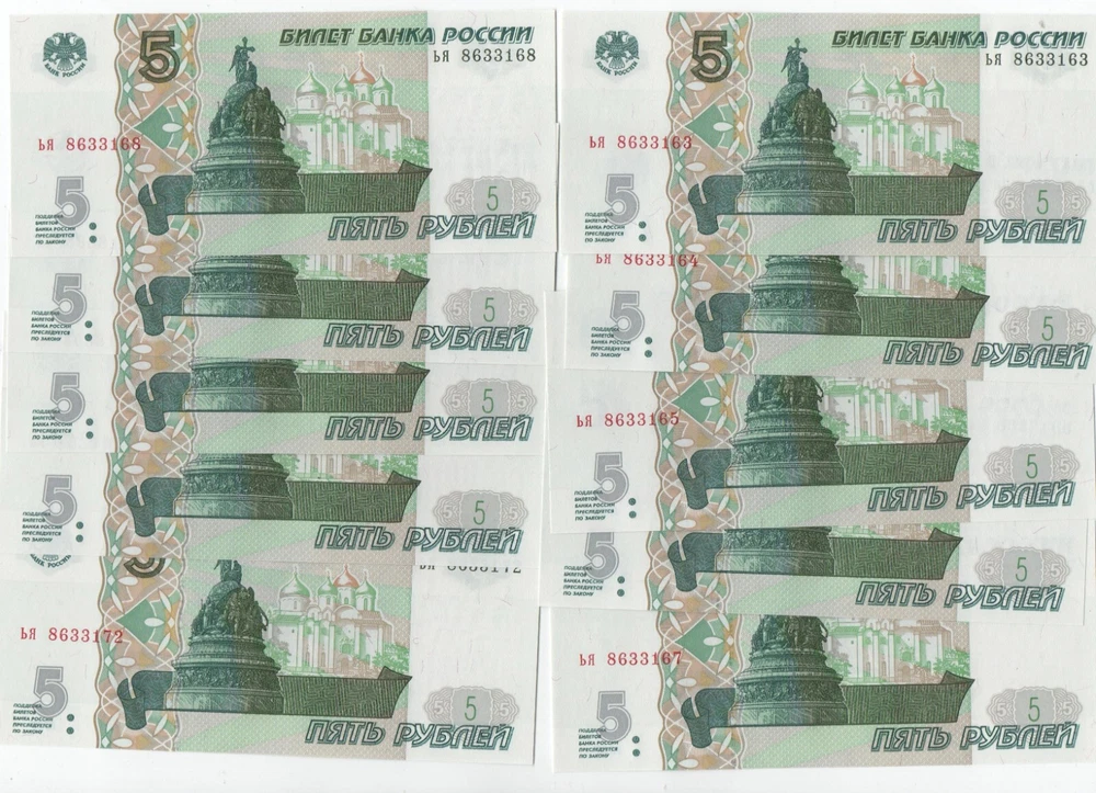 World Paper Money Russia 5 Rubles, 1997 Lot Banknotes, BU