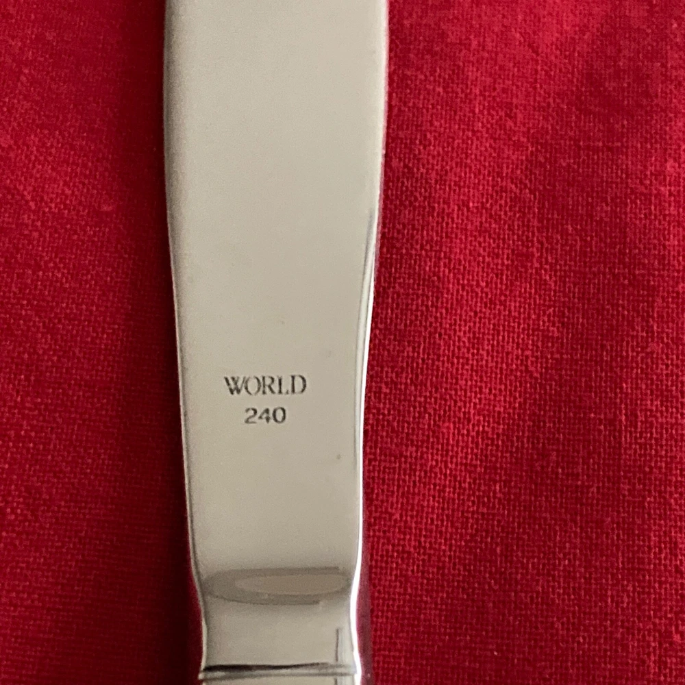 Manufacturer: World Tableware Pattern: Manhattan Type: Stainless Steel Piece: Butter Spreader Length: 7 3/8"