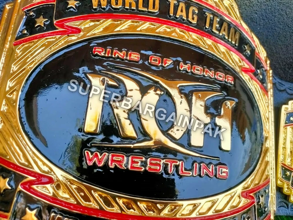 Welcome to our shop ------------------------------------------- We are specialist in manufacturing handmade products:: Our wide range of products include: >>>>Championship Belts WWE | WWF | AEW | UFC | WBC | WCW Product Description *** ROH World Tag Team Wrestling Champion Championship Belt 4mm Zinc *** Plate Metal: Zinc Strap: 100% Floppy Leather Largest Waist Size: Fits upto 46'' Belt Length: ~50" Weight: 4.57 lbs | 2.51 Kg Plate Thickness:4mm Version ::The belt is well crafted and manufactured to meet the quality demands of fans:: Get your hands on this marvelous piece now! Note: If you need further details kindly inbox us, we will try to be as responsive as possible. ------------------------------------------- Return Policy: Generally we don't have much complains on our products and we make sure to 100% satisfy our clients. We send the product in well Bubble Wrapped packaging so there is highly unlike chance of getting damaged item. In case there is a damage, we will try to give partial refund or you can ask for full refund within 30 days after returning the belt to origin. NOTE: 1. If you have placed the order by mistake or you have purchased a wrong item then we are not going to refund that. 2. Buyer will pay the shipping fee of returning the belt. ------------------------------------------- Happy Shopping! :)
