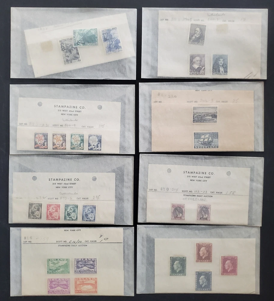 Worldwide Estate Lot of 100+ Old Stampazine Auction Lots, Many Mint Sets This collections includes sets from the Netherlands, Italy, Iceland, France, Liechtenstein, plus Many Cheaper, plus thousands of common to better duplicates, sorted by country. Includes an album of mostly mint 1930s-40s Austria, Belgium, Czech, and Hungary. Stockbook is made up of NH Czech, Hungary, 1940s-50s cheaper sets. Much better Catalogue Value of at least $2,000, plus lots of cheaper and misc. A bargain for this price! *** INTERNATIONAL SHIPPING QUOTED*** Thank you for viewing... Please email any questions you may have.... Take a moment and check out our other unique auctions !!! ***** Email us about signing up for our mailing list******* Exciting new items every day Philately - The Quiet Excitement Shipping We try to Ship Within 5 Business Days of Cleared Payment Will calculate international shipping PLEASE READ International Buyer's Shipping Instructions International shipping "" First Class Registered ENVELOPE " NO EXCEPTIONS ! ** Insurance, Registered mail or Confirmation/Signature Guarantee is included in the price of shipping for the USA only ** Our goal is to please our customers, provide quality and unique items, have successful transactions and earn positive feedback with a 5 star rating. We strive for accurate descriptions, quick turnaround, detailed communication, and reasonable shipping charges on every lot. Your feedback is important to us. If you feel anything about the transaction was less than 5 star, please give us the opportunity to rectify the situation Thank you The Staff at Henry Gitner Philatelists, Inc.