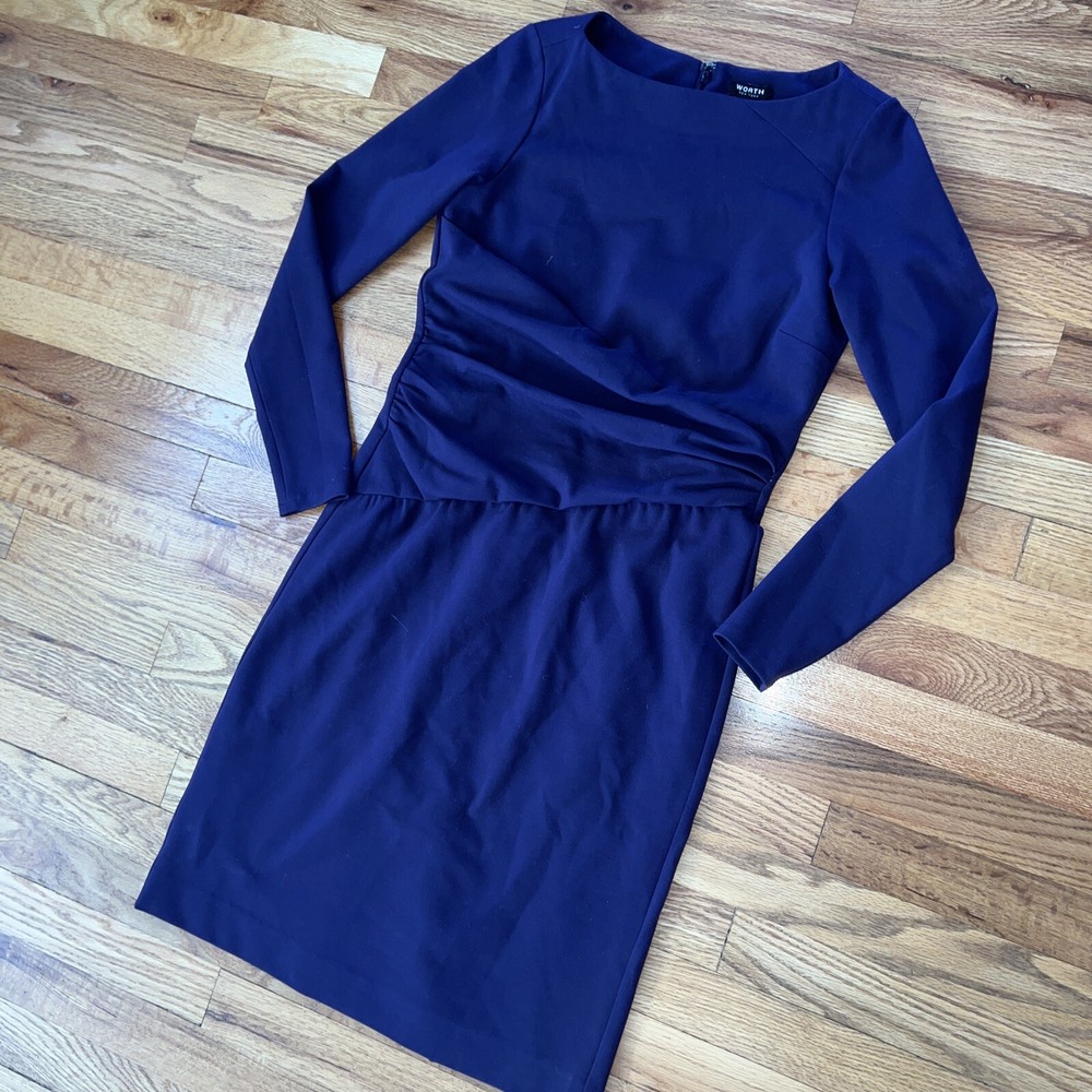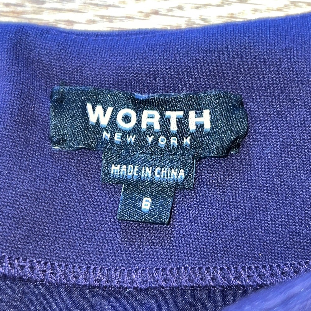 Worth New York Navy Long Sleeve Sheath Faux Wrap Dress Size 6 Grape Violet Lined.