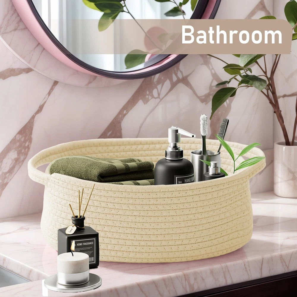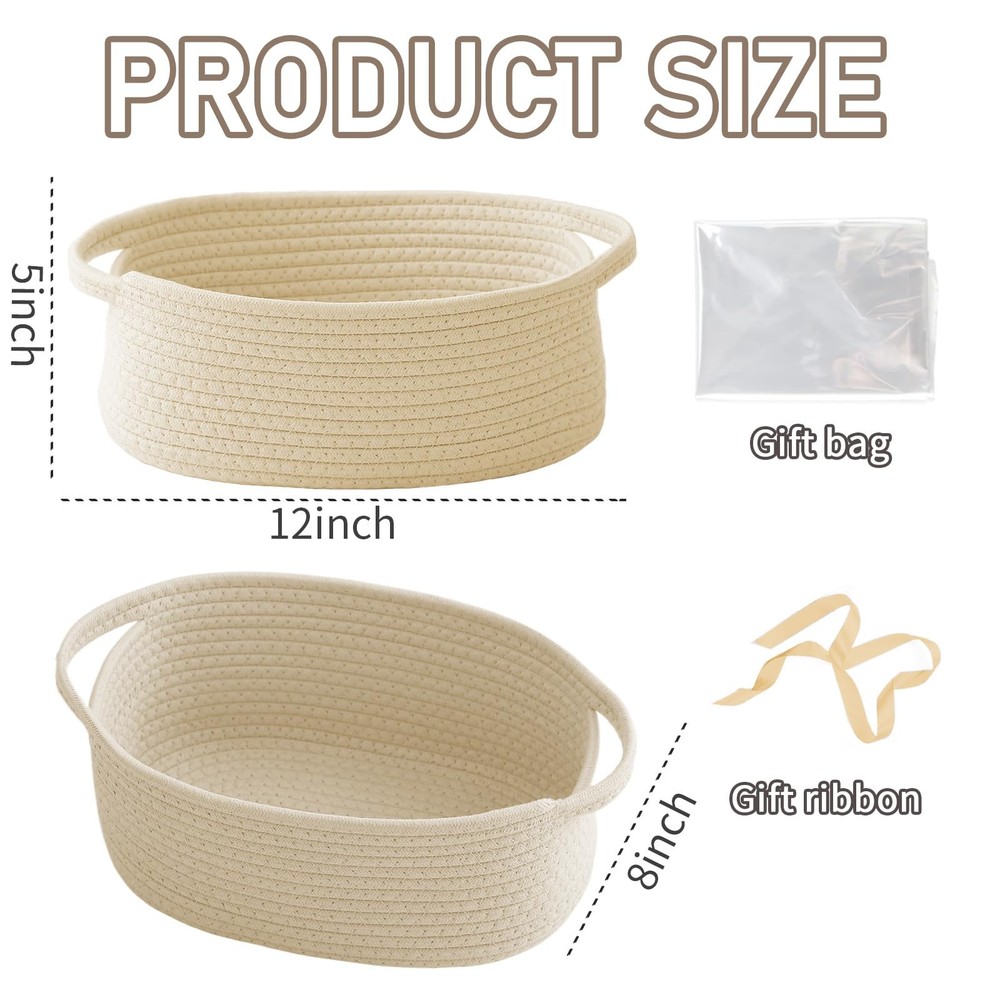Handwoven Cotton Rope Basket: Your Stylish Organizer & Heartfelt Gift Solution Imagine transforming cluttered spaces into curated moments.The Cotton Rope Basket isn't just storage – it's where rustic charm meets everyday functionality. Handcrafted by skilled artisans using natural cotton rope,each uniquely textured basket brings warmth and artisan quality to your modern home. Why This Basket Belongs in Your Home: Multi-Space Organization Genius Tame the chaos in style! Perfectly sized for tight spots, it corrals toys in the nursery, toiletries in the bathroom,or pantry snacks in the kitchen. Soft,reinforced handles make lifting effortless – whether it's a diaper caddy for midnight changes or a mobile pet toy bin. The Empty Canvas for Unforgettable Gifting Go beyond the ordinary gift bag! Fill this elegant, ribbon-adorned basket with personalized treasures for Father's Day gourmet treats,or luxuries for birthdays. Its timeless woven design adds a layer of thoughtfulness store-bought packaging can't match. Instant Rustic Decor Upgrade More than just a utility bin, it's a decor statement.The natural cotton weave and earthy tones inject cozy, farmhouse-inspired charm onto open shelves, closet systems, or as a standalone accent piece.Beauty and order, effortlessly combined. Crafted for Love & Daily Life: Gentle & Strong: Naturally soft cotton is safe for pet items, yet durable for daily use. Thoughtful Details: Delicate ribbon trim elevates it from simple storage to a decorative object. Sustainable Style: A handmade, natural fiber choice for the eco-conscious home. Give the Gift of Thoughtful Organization. Whether treating yourself to a tidier sanctuary or crafting a gift that speaks volumes, the basket turns everyday moments into beautifully curated experiences. Versatile Storage Basket---Its perfect for organizing toiletries, toys, or pantry items. This basket measures 12 x 8 x 5 inches, make it ideal as a small basket for shelves or closet organizers and storage, keeping your space tidy and stylish. Personalized Gift Basket---Use this elegant gift basket empty to create custom presents for birthdays, weddings. A beautiful basket for gifts that adds a warm, personal touch to your birthday gift bag or father's day gift baskets. Soft and Sturdy Handles---The ergonomic soft handles provide a comfortable grip, ideal for moving around the house. Great for use as a toy bin, diaper caddy, or pet toy basket, offering both comfort and convenience in daily use. Stylish Home Decor---This decorative basket adds a cozy, rustic charm to any room. It's a beautiful and cute baskets for organizing solution that doubles as a home decor piece. Handmade Woven Basket---Made from natural materials, this woven baskets for storage option is safe for kids and pets. Crafted by skilled artisans, each cotton rope basket is unique in texture and quality.