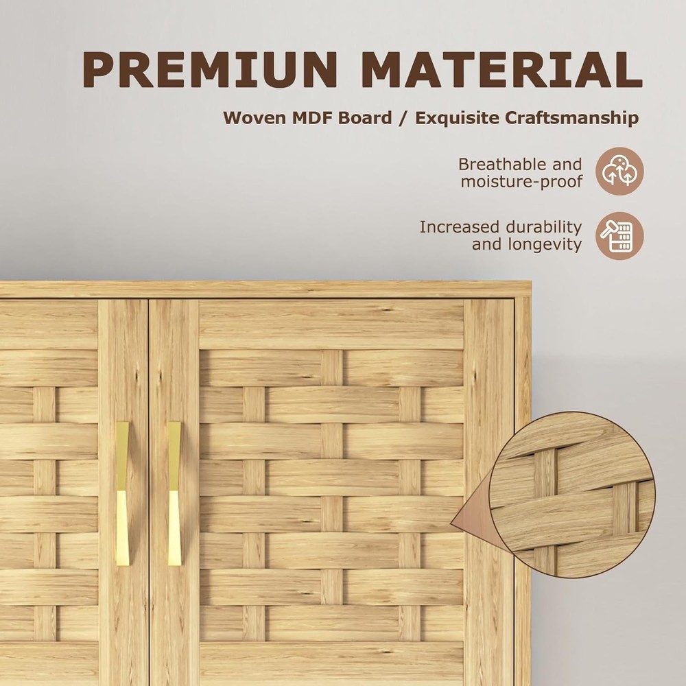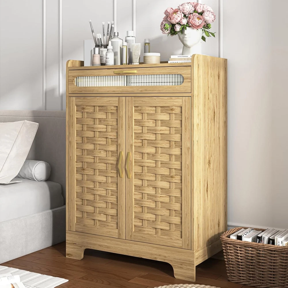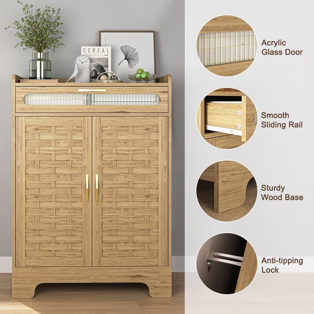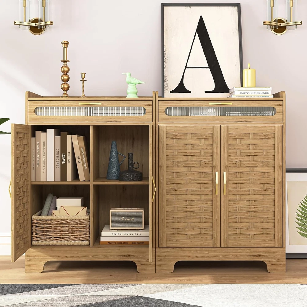 Product Description About this item 【Farmhouse Woven MDF Door Design】 Our kitchen buffet storage cabinet comes with a farmhouse design, and it will easily fit in your kitchen or living room. The unique woven MDF design with exquisite craftsmanship make this cabinet a perfect match for your home decoration.The smoothly sliding drawer and metal handles bring modern and classic for your living space and better integrate into the whole environment, which also makes it easy to assemble. 【Spacious Storage Sideboard】 Our woven MDF kitchen sideboard buffet designed with a drawer and 2 Door Cabinet with interior adjustable height shelf,which can easily meet your different storage needs and also offers great convenience for you to store all kinds of daily necessities. 【Perfectly Size & Multipurpose Use】The accent cabinet with doors measure 13.7"D x 29.5"W x 41.3"H. Weight: 80 lbs. Made of premium MDF and solid wood leg base for sturdiness and stability. 2 tiers zoned storage and a spacious tabletop provide ample storage space, ideal as hallway cabinets, entryway storage cabinets, office storage cabinets, sideboards, small buffet cabinet, floor cabinet 【Practical Home Necessity】The buffet table for kitchen or dining room can be used with confidence. Reliable and harmless material with smooth surface and no peculiar smell. The cabinet also has anti-tip accessories that can be fixed on the wall to provide better protection for your family. This sideboard cabinet is an elegant, attractive and functional piece of decorative furniture that will complement any style of room 【Easy Assembly】Comes with all necessary hardwares and an detailed instruction manual to help quick and effortless setup. If you have any issues, please let us know, we will give solution within 24 hours. On Aug 14, 2025 at 22:39:29 PDT, seller added the following information: