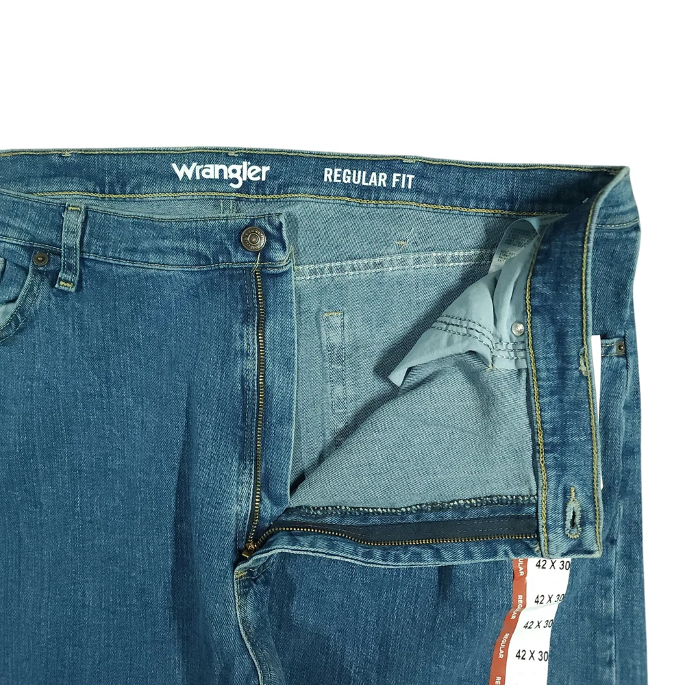 Wrangler Jeans 42x30 Mens Regular Fit Flex High Waisted Wide Leg Whiskering 10MGW25MS These jeans are going to sit at or slightly above your waist and provide that classic/regular fit through the seat, tapered leg below the knee, and that Y2K wide leg style. Get them before they are gone!! Product Details Waist 43 inches Inseam 29 inches Rise 13 inches Leg 18 inches Thigh/Hip 46 inches Knee 21 inches Material 99% cotton/1% spandex Imported Nicaragua I ship the same day if the order is received by 1 PM EST or ship the next day utilizing recycled, sustainable packaging and materials. I do not ship to Belarus, Russia, Mexico, Vietnam, and Germany due to national shipping requirements/restrictions. I offer automatic combined shipping and also I offer bundle and shipping discounts for 2 or more items purchased in my store. Buyer is responsible for the payment of all import fees if international sale. I accept returns if permitted by the platform that the item was purchased on within 30 days of delivery date. Items must be returned in the condition received. International returns are at the buyer's expense. All clothing items have been steam cleaned and/or washed. If you have questions, I will respond as quickly as I can.
