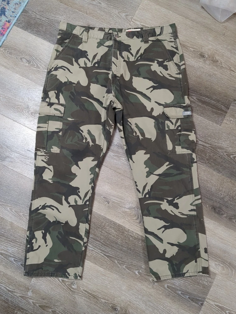 Elevate your outdoor style with these Wrangler Men's Camo Pants. Designed with a dual layer fleece lined interior, these pants provide warmth and comfort in colder weather. The relaxed fit ensures ease of movement while the cargo style offers practicality. These pants come in size 38X30 and feature multiple pockets for storage. Perfect for any outdoor adventure, these Camo Pants are a must-have for any fashion-forward individual.
