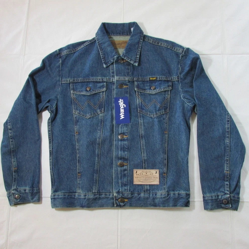 Brand new with tags Men's SIze Brand: Wrangler Color: Mid Wash Blue Long Sleeve Cowboy Cut Denim Trucker Jean Jacket Approx Measurements: Laying Flat (Pit to pit x Length) Small - 21.5" x 25" Medium - 22.5" x 26" XXL - 27.5" x 27"