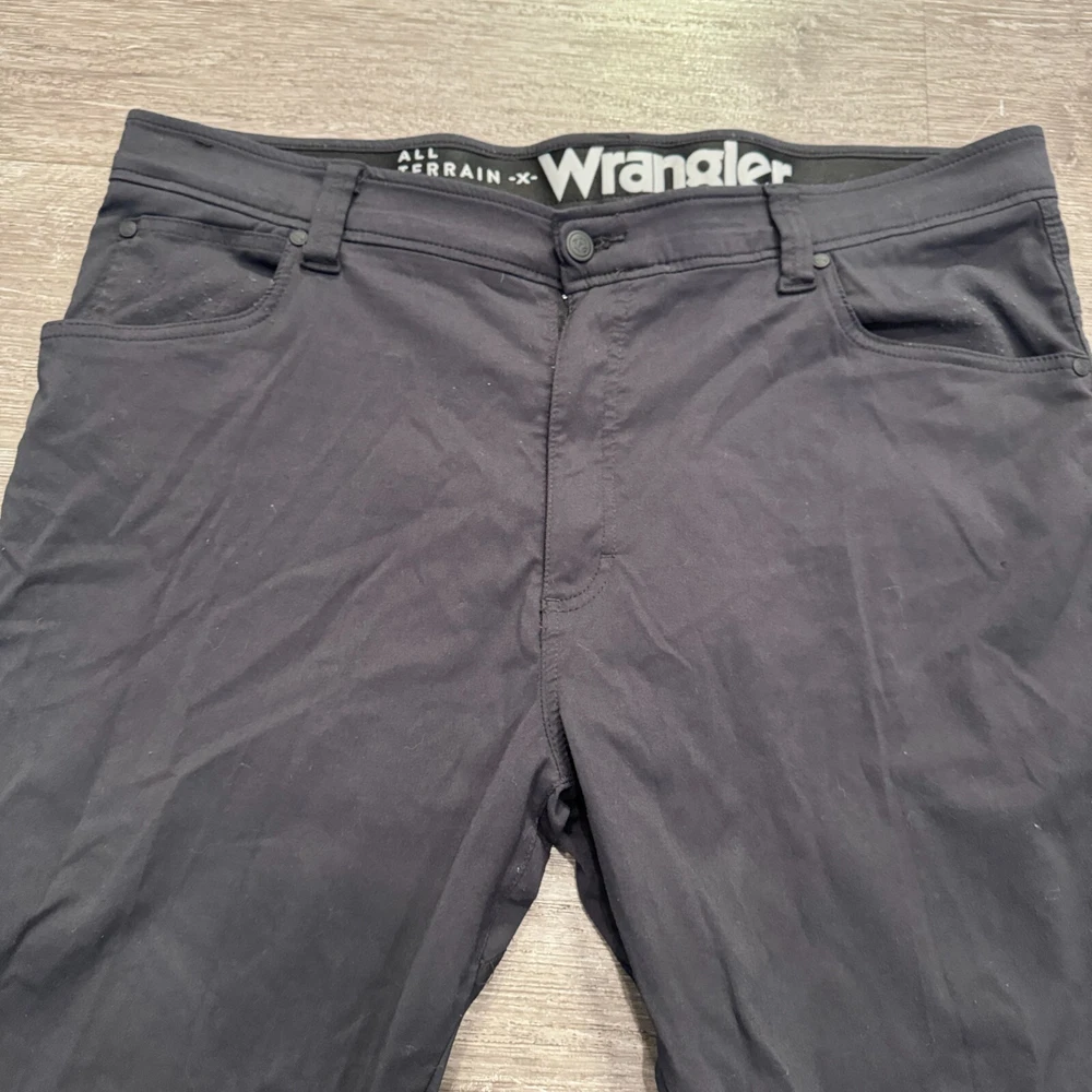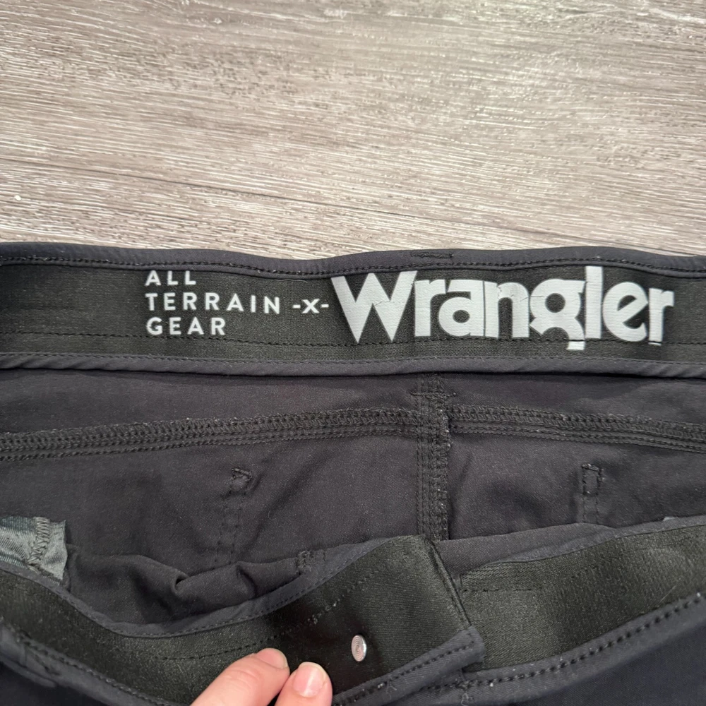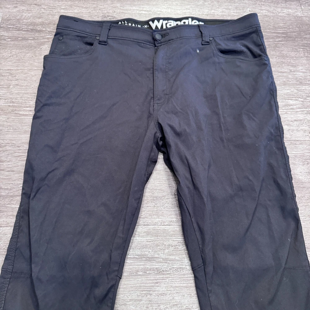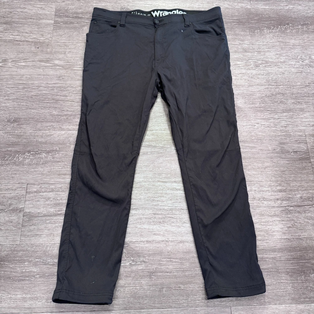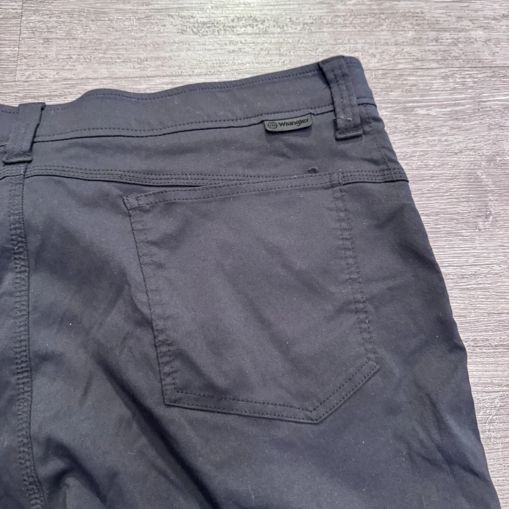 Size Type: Regular Brand: Wrangler Material: Nylon Blend Pattern: Solid Size: 40 Garment Care: Machine Washable Inseam: 30 in Rise: . Country/Region of Manufacture: Unknown Pocket Type: 5-Pocket Design Fit: Regular Theme: Outdoor Features: Pockets, Stretch, Comfort Model: . Leg Style: Straight Fabric Type: Canvas Type: Pants Front Type: Flat Front Color: Black Handmade: No Occasion: Casual Vintage: No Accents: Logo Waist Size: 40 in Closure: Zip Style: Hiking Pants Department: Men Season: Fall, Spring, Summer Personalize: No