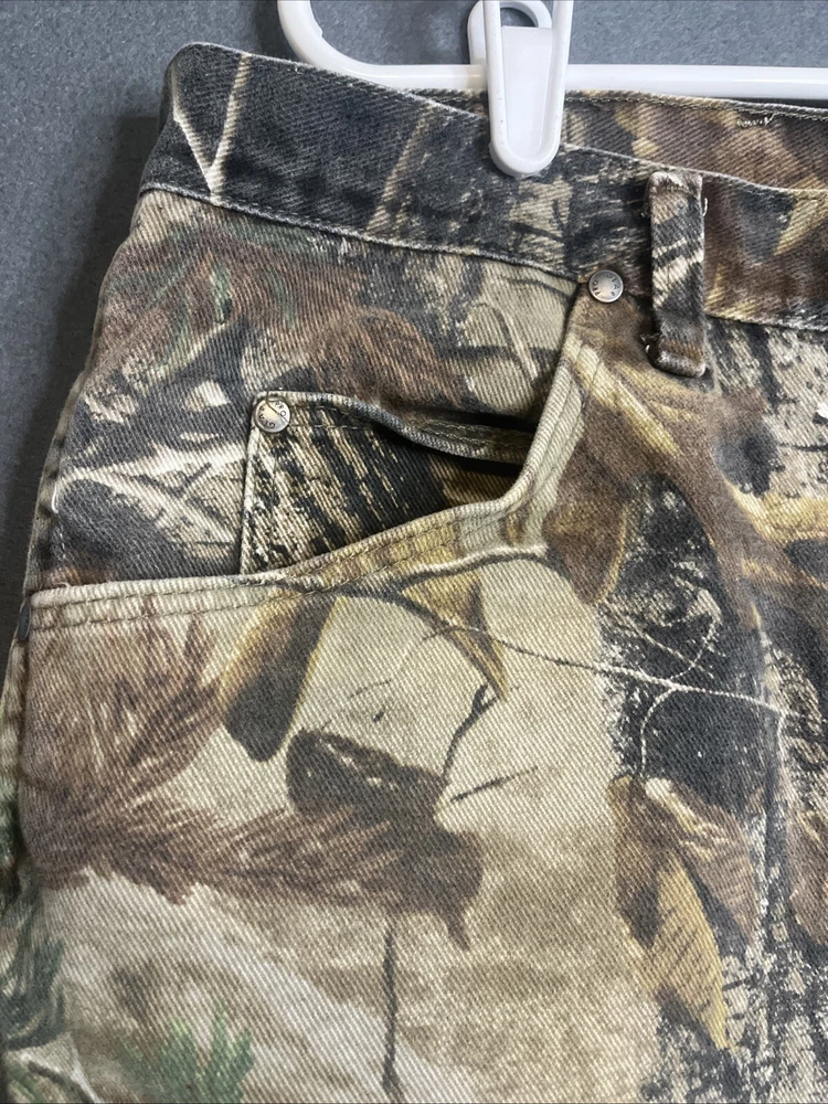 Get ready for your next hunting or outdoor adventure with these Wrangler Pro Gear Realtree Camo Insulated Pants. These jeans are made of comfortable and durable cotton denim fabric with a RealTree Camo pattern that blends well with your surroundings. The pants feature a 5-pocket design with a zip and button closure and a straight leg fit that is perfect for any occasion. The pants are machine washable and have a waist size of 44 inches with an inseam of 30 inches. They are insulated to keep you warm during the winter and fall seasons and are ideal for outdoor activities such as hunting. These pants are a great addition to your wardrobe and are perfect for anyone who loves nature, work, or hunting.