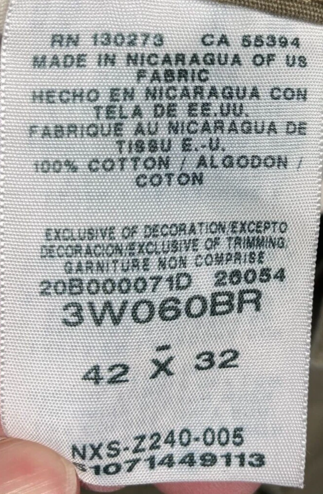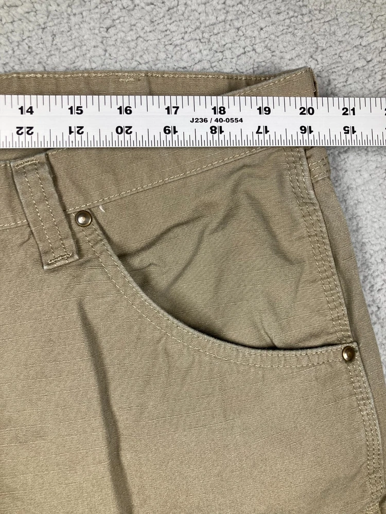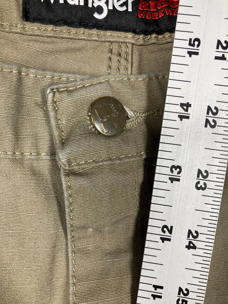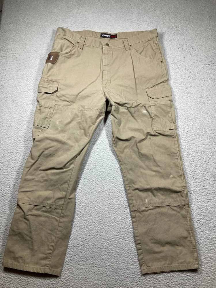 Pattern: Solid Brand: Wrangler Waist Size: 40 in Leg Style: Straight Closure: Button, Zip Accents: Logo Department: Men Type: Pants Inseam: 31 in Material: Cotton, Cotton Blend, Spandex Style: Cargo Theme: Nature Front Type: Flat Front Garment Care: Machine Washable Color: Brown Season: Fall, Spring, Summer, Winter Occasion: Workwear Size: 42 Fabric Type: Canvas Size Type: Regular Product Line: Wrangler RIGGS Workwear Rise: High (Greater than 12 in)