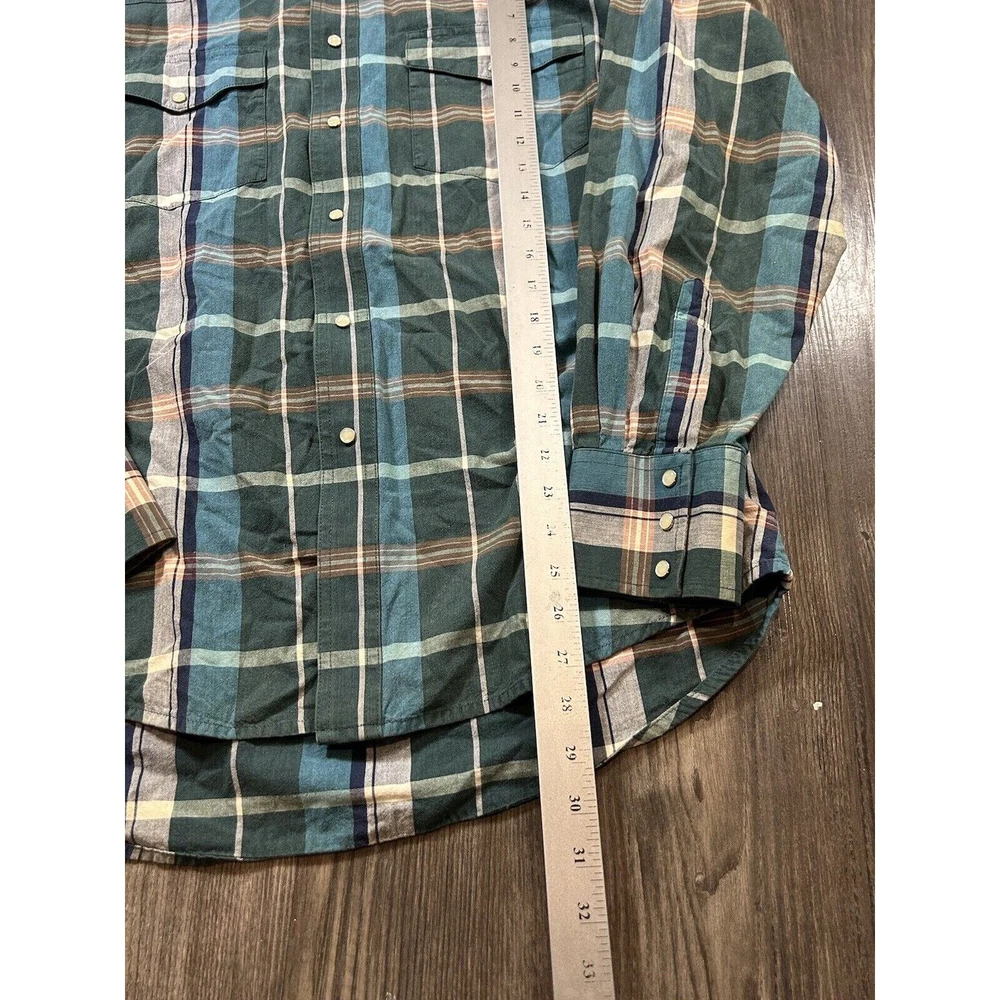 Wrangler Western Pearl Snap Long Sleeve Shirt Blue Plaid Mens Size Small. Condition is Pre-owned. Shipped with USPS Ground Advantage.