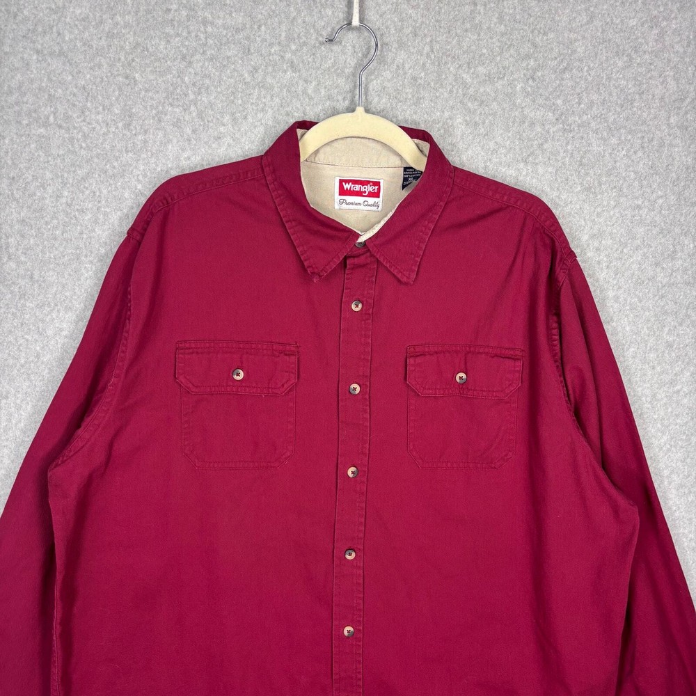 Wrangler Shirt Mens XL Red Button Heavy Cotton Workwear Outdoor Hiking Camping Pre-owned condition: minimal to no signs of wear, small marks on front SKU 5659 **Please see all pictures for full item condition and details** - Ships Same/Next Day, Professional Seller, Offers Welcome, Like or watch for price drops - Item in photos is exact item you will receive - I list new items daily, be sure to browse my store/closet for more items - Bundle pricing and combined shipping available for additional savings - Feel free to send a message