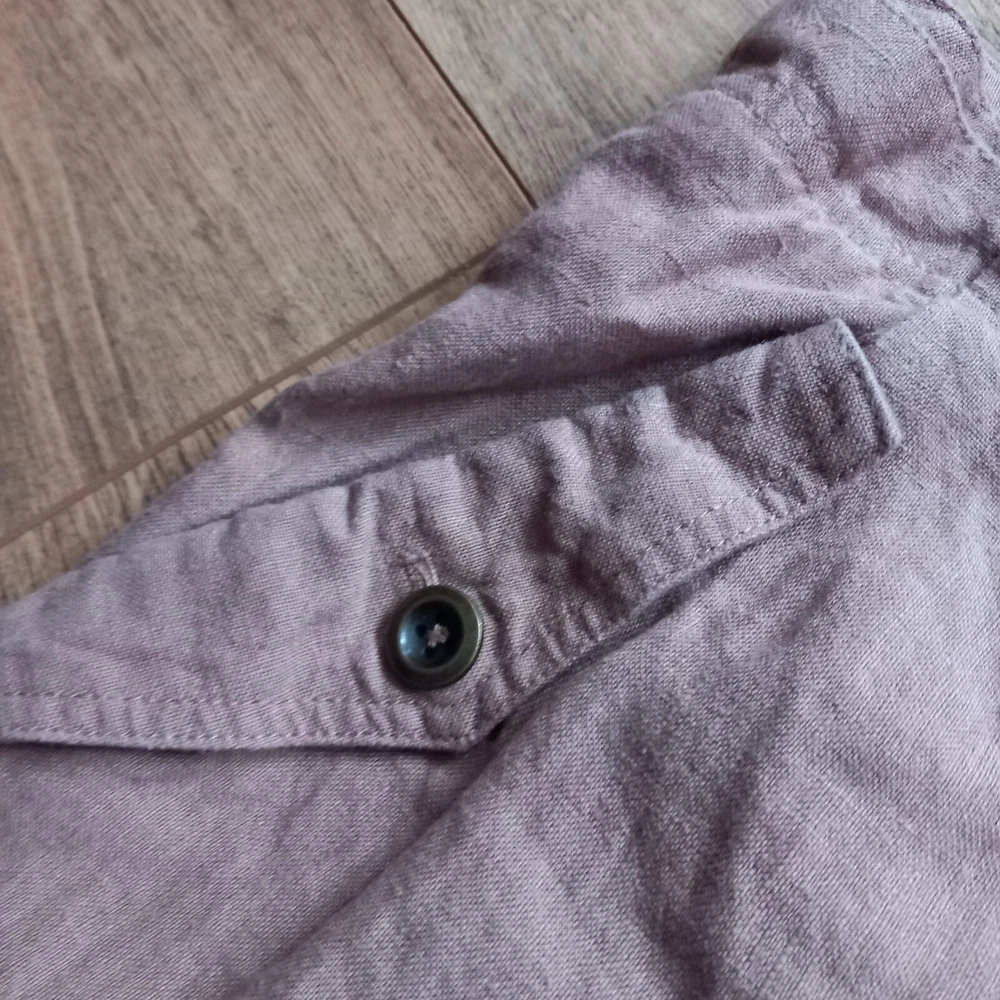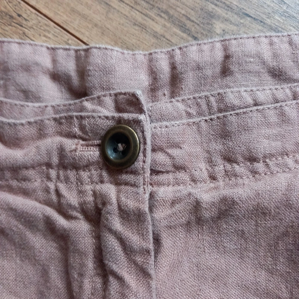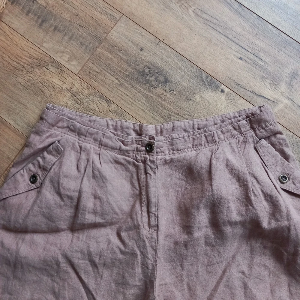 Gently used condition with no faults found. Darker beige colour neutral heavier linen wide leg Lagenlook trouser from WRAP London. Measures 19" across waistband, 13" rise, 24" across hip area approx, 28" inside leg so an ankle length for most. 14" across hems.