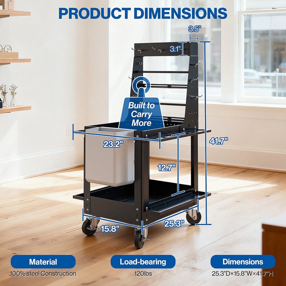 Mounting: Free Standing Assembly Required: Yes Item Height: More Than 24 in Pattern: Solid Item Width: 23 in Material: Metal, Steel UPC: Does not apply gtin13: Does not apply Item Length: 22 in Type: Craft Storage Organizer Model: AV-P Brand: POCHAR Color: Black Style: Modern Features: Heavy Duty, With Handles, With Wheels, with Hooks and Paper Holder