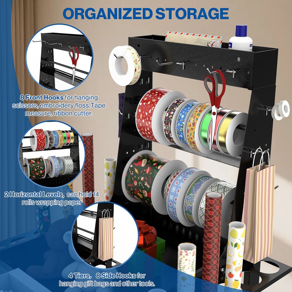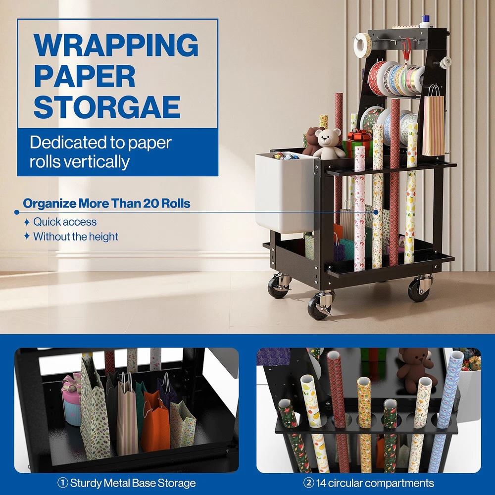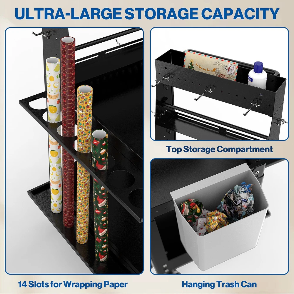 Wrapping Paper Storage Cart - Rolling Gift Wrap Station with Organizer Holder