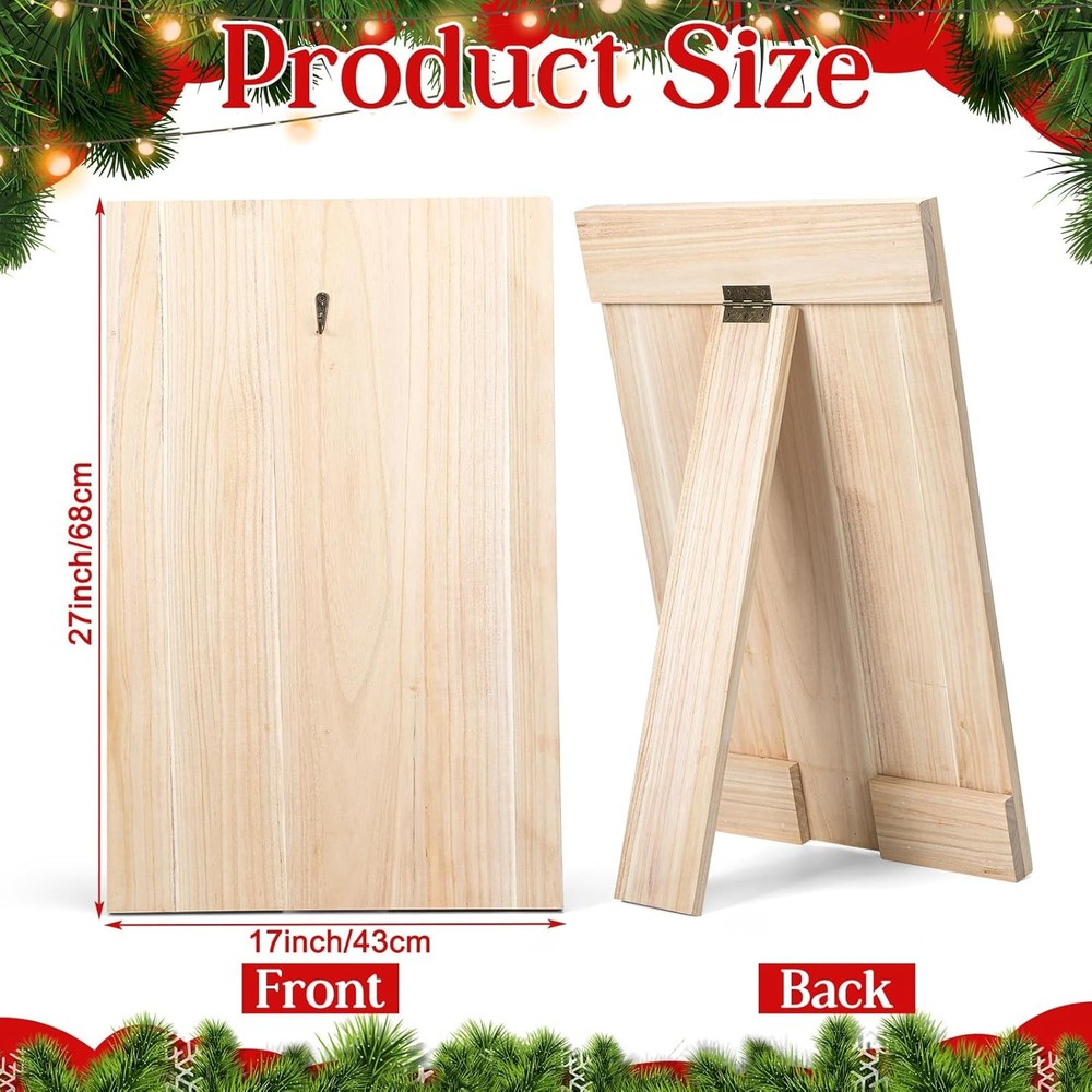 Features: Easy to Use: This wooden wreath display stand is easy to use and an essential tool for experienced wreath artists and beginners alike. The angle is easily adjustable, and the sturdy stainless steel hooks allow for uninterrupted creation. Premium Materials: This Christmas wreath display stand is made of solid wood, making it durable, lightweight, portable, and easy to store. It provides excellent support both indoors and outdoors. The natural wood grain adds a touch of vibrant color to the Christmas season. Specifications: Material: Wood Color: Natural Wood Color Size: 17 x 27 inches / 43 x 68 cm Package Includes: 1 wreath display stand On Nov 8, 2025 at 11:08:35 PST, seller added the following information: