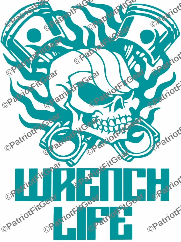 Wrench Life,Mechanic,Gear Head,Wrenching,Skull,Pistons,Stickers,Vinyl Decals