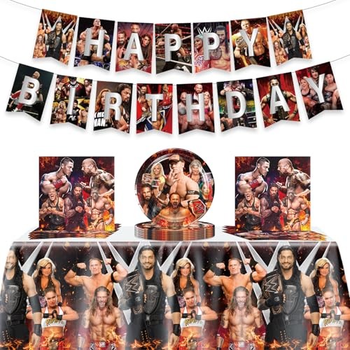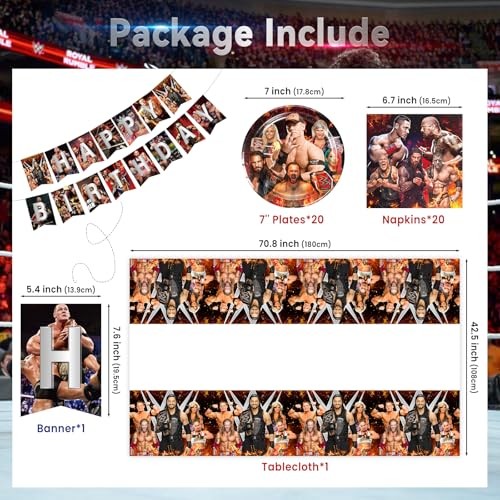 Return Policy Fast Delivery Trusted seller Wrestling Birthday Supplies, 42Pcs Wrestling Decorations include Banner, Tablecloth, Plates and Napkins for Teens Kids Party Decor Product Description 【Wrestling Party Supplies】 The set includes 20pcs Plates, 20pcs Napkins, 1pc Banner, 1pc Tablecloth, Perfect competition decorations for birthday party, makes your party more impressive 【Great Quality Materials】 The Wrestling's dinner plates, napkins and banner are made of recyclable food-grade paper; Tablecloth is made of plastic. Safe, reusable and not easily damaged, you can buy with confidence 【Easy to Clean】Our competition set is designed for easy cleaning, leaving you more time to enjoy your guests and make lasting memories. Say goodbye to tedious washing and hello to stress-free entertaining 【Welcome to Wrestling's Party World】 Here is full of childlike themes and special patterns, this party decorations set will decorate an unforgettable party for your friends in their birthday, let's decorate together 【Perfect for All Occasions】 The set perfect for various occasions, such as birthday parties, game parties, competition party, class holiday parties and family entertainment parties, etc, enjoy the kingdom of Wrestling's theme party with your family and friends Shipping Returns Payment Shipping Shipping is FREE to all addresses other than APO/PO boxes in the lower 48 states. All our stock ships from US-based warehouses. Shipped via USPS or UPS (depending on location and package weight) Unless stated otherwise, all orders will ship within 24-72 hours of your payment being processed. Check our feedback to see the great reviews of FAST shipping we offer. Returns Seller does not accept returns Payment We currently accept payment via eBay managed payments only. Once payment is cleared, we will dispatch your shipment within 1-3 business days. Please refer to the "Shipping" tab for more information regarding shipping speed to your destination.