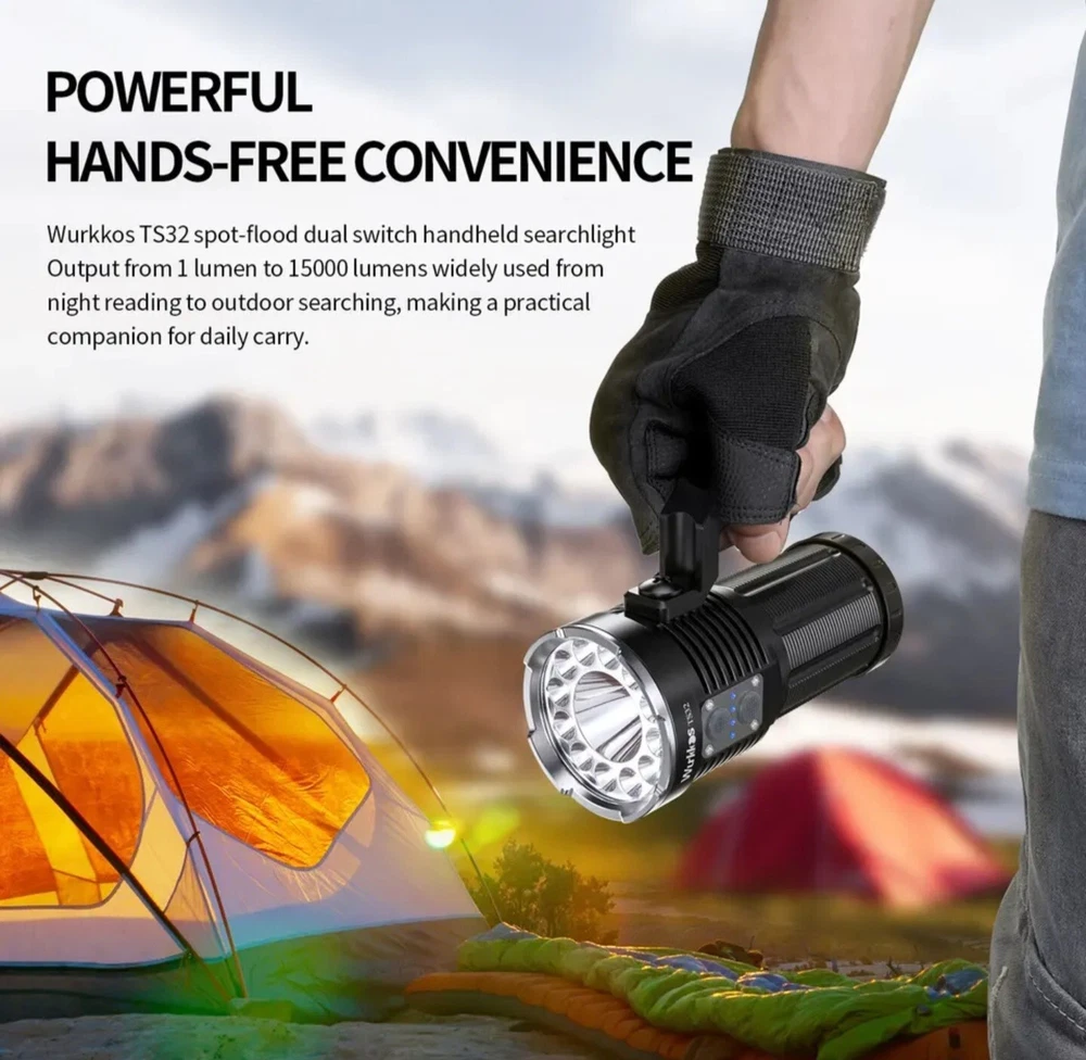 Wurkkos TS32 High Power Flashlight 15000LM Long Range Spotlight/Floodlight HICRI
