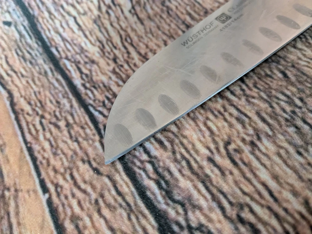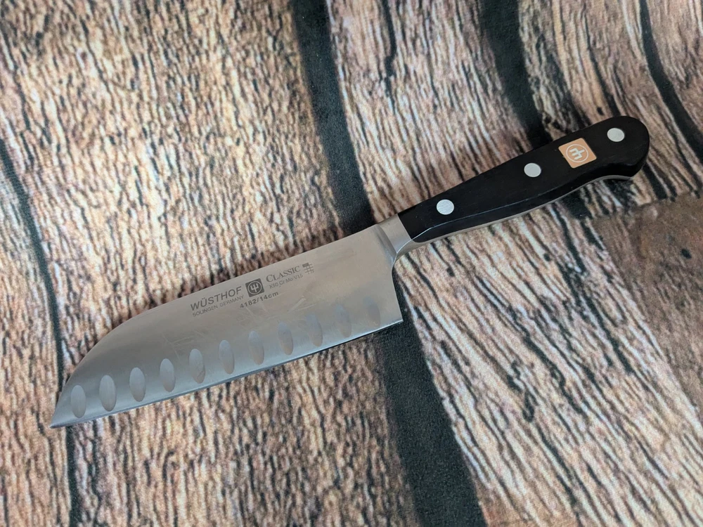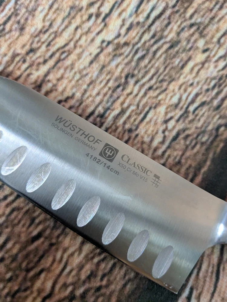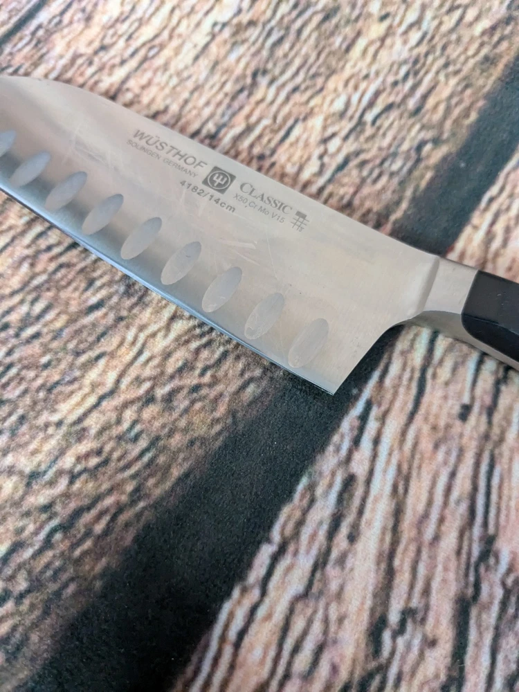 Color:BlackBrand:WÜSTHOFFood Compatibility:UniversalSet Includes:Santoku KnifeNumber of Items in Set:1MPN:4182/14cmType:Santoku KnifeCountry/Region of Manufacture:GermanyModel:4182/14cmPersonalize:NoMaterial:Stainless SteelBlade Edge:StraightBlade Length:14 cm