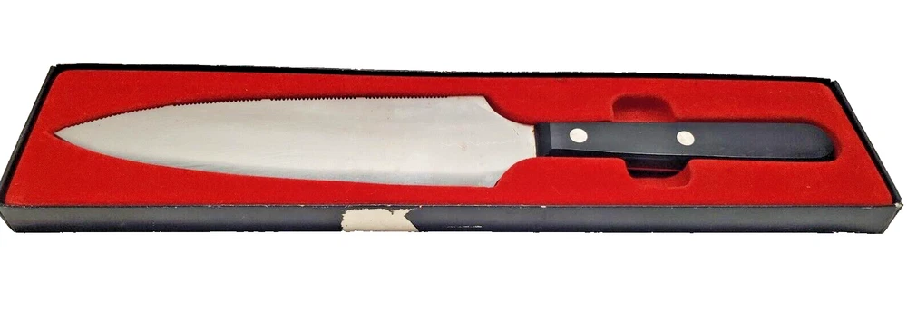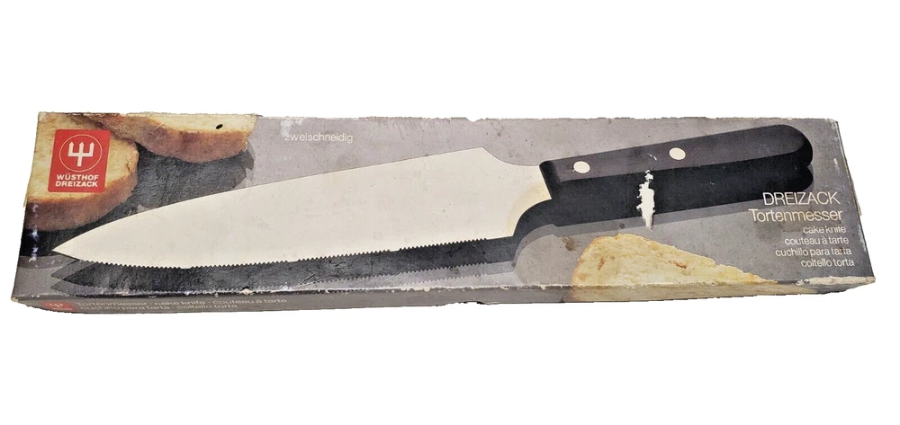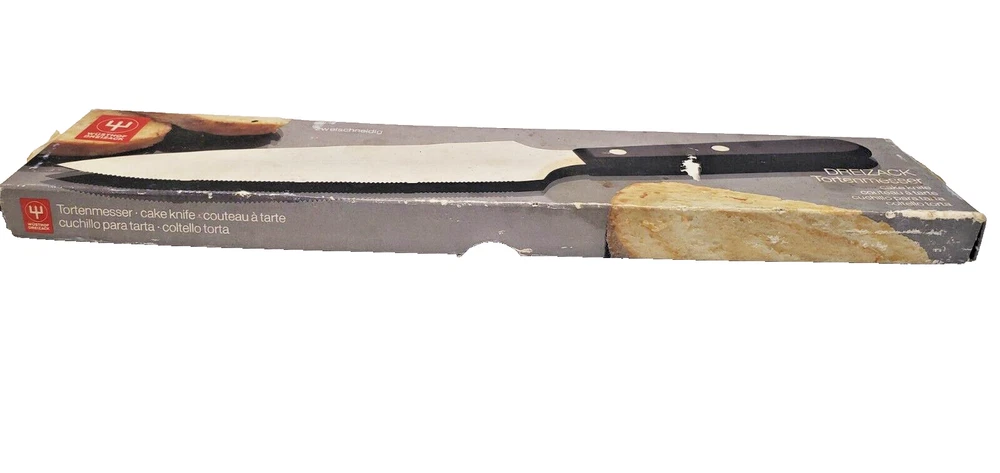 Cake knife is in very good condition. Difficult to photograph details due to brightness. Very little signs of use. Box shows signs of storage use. View pics. Box wear is cosmetic and will store the knife well. Please examine all photos. Send me a message if you have any questions. I have other great finds available in my store. Just click the link to view other items. Thanks for stopping by