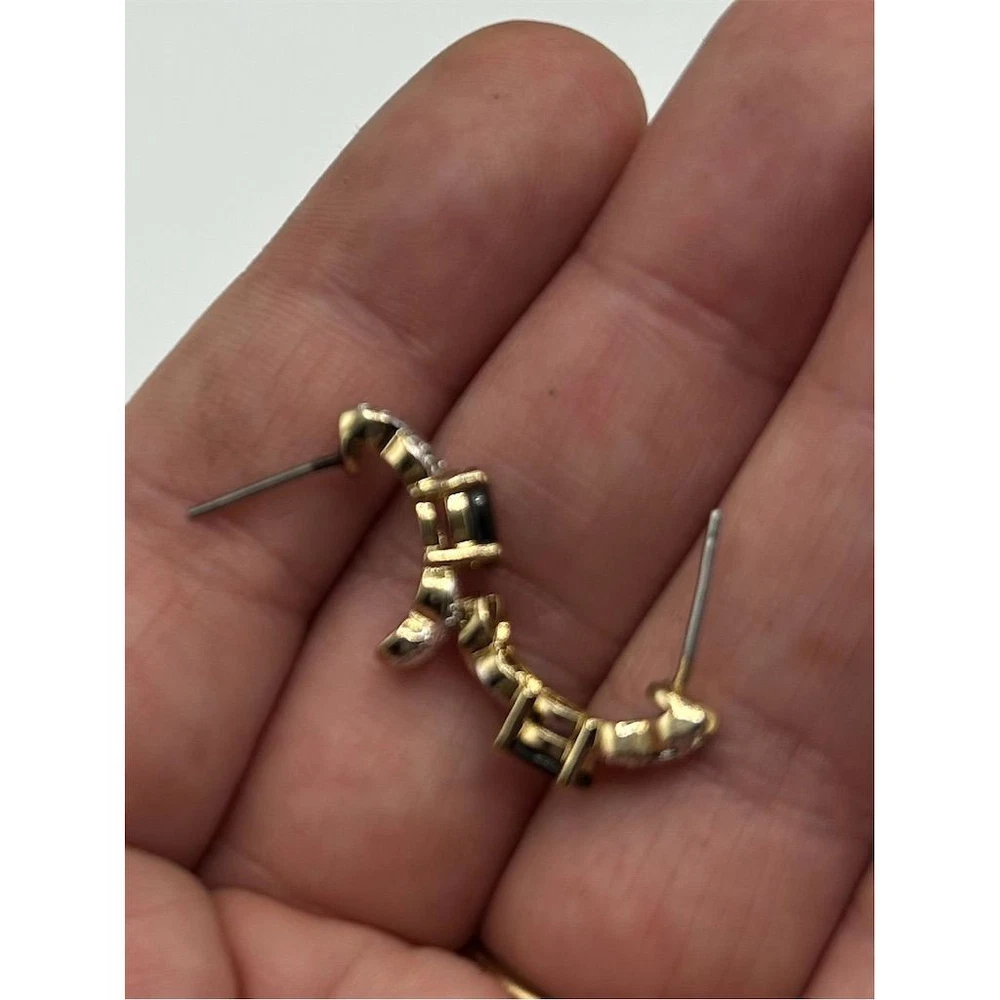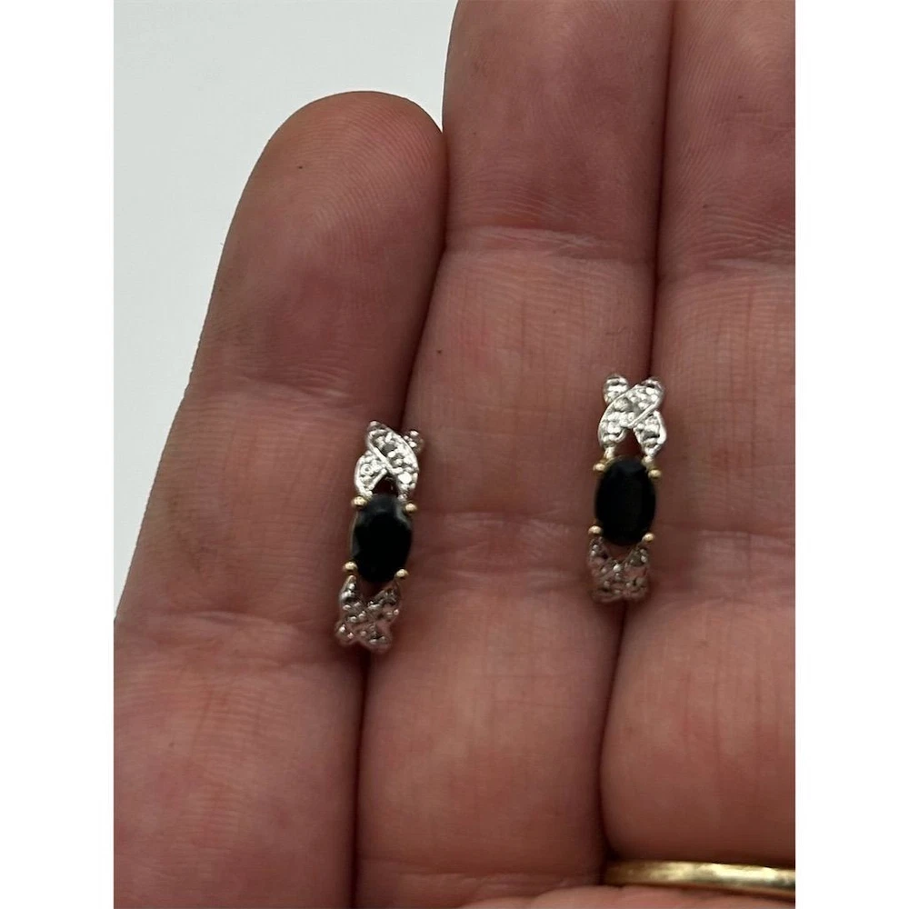 These elegant dangle earrings feature striking onyx gemstones set against a backdrop of radiant gold tone, creating a captivating contrast that adds a touch of sophistication to any ensemble. Perfect for an anniversary celebration or a night out, these earrings are designed to make a statement. Their timeless style ensures they complement both modern and classic looks, making them a versatile addition to your jewelry collection. These earrings are pre-owned, offering a unique charm and character. As with most vintage jewelry, there could be minor discoloration, or light scratches or scuffs. Please look at photos for condition or contact me with any questions or measurements.