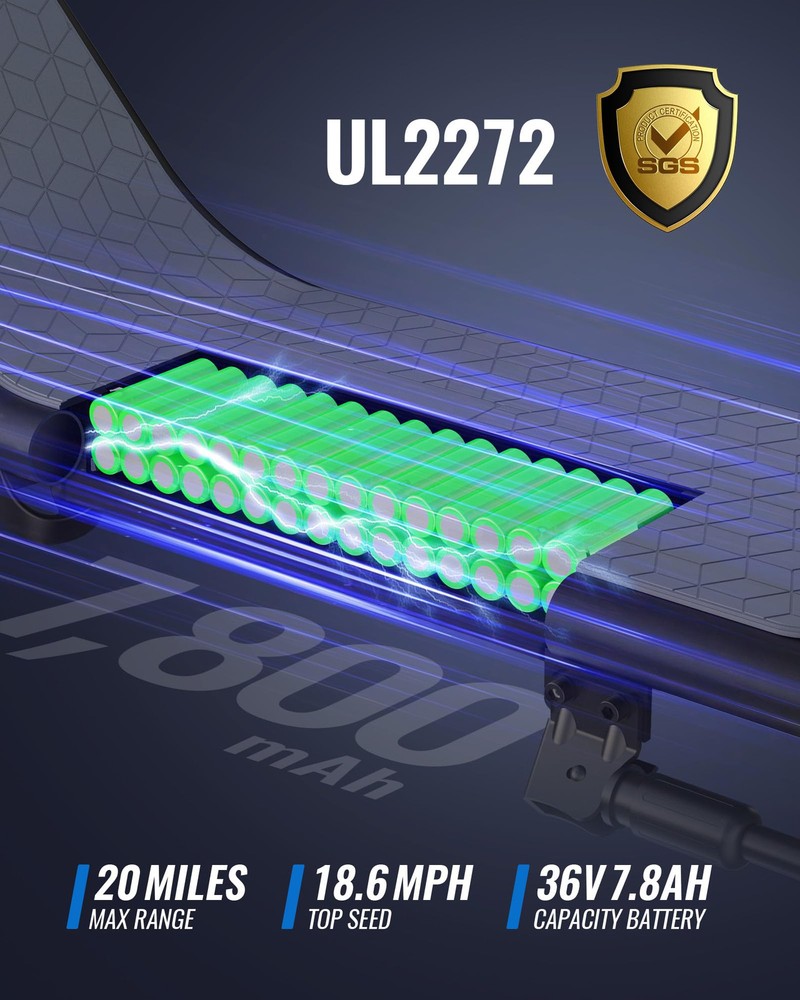 【Upgraded Electric Scooter】X2 implements the innovation of adult electric scooter with the addition of a removable yet sturdy basket equipped with extra long straps that allow you to easily carry anything you want. The X2 has a large console, folding mechanism, and has passed rigorous UL2272 testing. 【Powerful Motor & Long Battery Life】 The electric scooter for adult has a powerful 550W motor that easily climbs 15° slopes, and can travel 20 miles at 18.6mph on a 5-hour charge. The electric scooter has 3 speed modes with adjustable pole is suitable for drivers from 5 '3 "to 6' 1". Maximum load 220LBS. 【Comfortable & Stable Riding】 Equipped with sturdy 12-inch pneumatic tires, which can effectively absorb ground vibration, provide a smooth riding experience, and can adapt to a variety of uneven roads and terrains. The 9.5-inch wide deck provides enough room for your feet, even for a small pet, and the silicone pads on the deck effectively relieve foot fatigue, providing a softer standing environment, increased balance and comfort. 【Safe Riding】 Electric scooter adults use front and rear disc brakes to ensure timely and effective braking and improve your driving safety. Bright front and rear lights, along with a bell, alert pedestrians and make riding at night safer. 【Portable & Durable】 The X2 electric scooter's folding design makes it easy to store in your car, school or office and other compact spaces. Whether it's for work or school, shopping or a weekend getaway, it's got you covered.