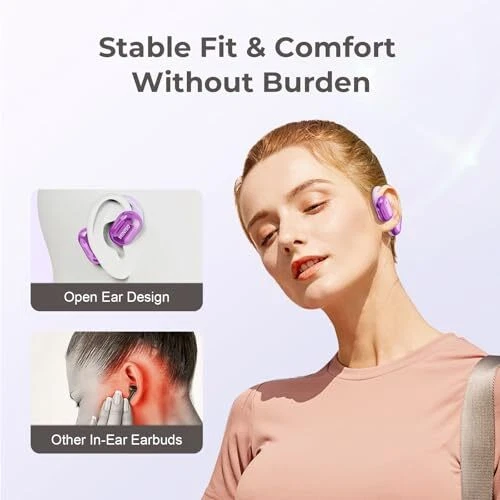 Return Policy Fast Delivery Trusted seller X23 Open Ear Headphones, Wireless Earbuds, Bluetooth 5.4 Air Conduction Sport Earphones with Earhooks, IPX5 Waterproof Sweat Resistant Earphones for Sport, Running, Workout Purple Product Description Open-ear Headphones: Unlike traditional in-ear headphones, they are not inserted into the ear canal, reducing ear pressure and making them ideal for long-term use. These wireless headphones blend your audio experience with ambient sounds to ensure you're aware of your surroundings while walking, biking or driving. This design increases safety and alertness, connecting you to the world of audio without isolating you from your surroundings. Immersive Listening Experience: Bluetooth headphones adopt a new diaphragm structure to ensure smooth and beautiful treble and deep and powerful bass, upgrading your listening experience. Dual 16mm drivers create a wide sound field, completely enveloping the listener in an immersive audio environment. Open-back headphones enable a true "nothing in the ear" listening experience and are designed to give you great sound in a natural, comfortable way. Long Battery Life and Fast Charging: This wireless headset uses low-power technology. When fully charged, the Bluetooth headset can continuously play music for about 6 hours, and with a 300mAh charging box, it can be used continuously for a total of 40 hours. What's more, these open-back headphones support fast charging, charging in just 2 hours. Just 15 minutes of charging provides 4 hours of playtime. Bluetooth 5.4 and Fast Pairing: The headset uses an advanced Bluetooth 5.4 chip to support high-resolution AAC and SBC audio transmission, enabling seamless pairing with smart devices and ensuring high sound quality with ultra-low latency and perfect synchronization. It is compatible with iOS, Android and Windows systems and performs well on different devices. After pairing for the first time, open the charging case cover and they will automatically connect to your device for easy use. Soft Material, Comfortable to Wear: The soft ear hooks of the open earphones are combined with the large support area to create a "three points and one line" ergonomic support structure, which is the perfect combination of comfort and stability. Since the earphones are not in the ears, they will not cause discomfort or pain, and can be used for work, running, and mountain climbing. The dual-mode design for gaming and music makes this earphone suitable for various scenarios. Weighing only 8.5 grams each, the earbuds minimize pressure points in your ears. Shipping Returns Payment Shipping Shipping is FREE to all addresses other than APO/PO boxes in the lower 48 states. All our stock ships from US-based warehouses. Shipped via USPS or UPS (depending on location and package weight) Unless stated otherwise, all orders will ship within 24-72 hours of your payment being processed. Check our feedback to see the great reviews of FAST shipping we offer. Returns Seller does not accept returns Payment We currently accept payment via eBay managed payments only. Once payment is cleared, we will dispatch your shipment within 1-3 business days. Please refer to the "Shipping" tab for more information regarding shipping speed to your destination.