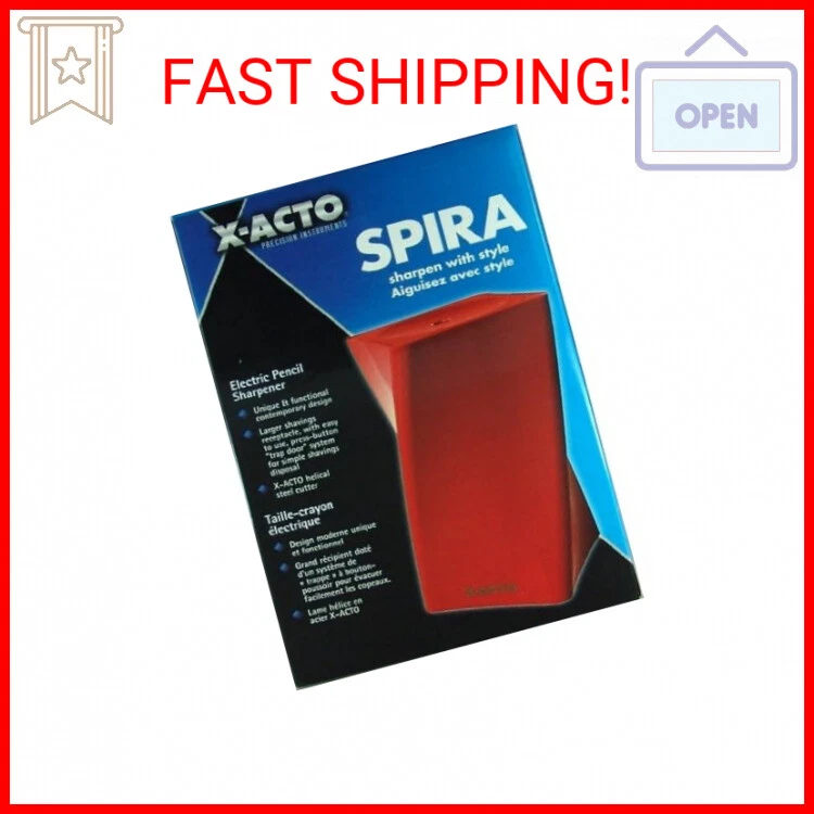X-Acto Spira Electric Pencil Sharpener - Red - Attractive Contemporary Pencil Sharpener With Quiet, Heavy-Duty Motor - Uses X-Acto Helical Steel Cutter For Sharp Tips - Larger Shavings Receptacle With Easy-To-Use Press-Button "Trap Door" - 120 Volt DC Adapter Included Payments We accept the following payment methods PayPal Support Our dedicated customer support team is here to assist you from 9AM to 5PM Monday through Friday, excluding public holidays. Should you reach out to us and not recieve an immediate response, it's likely due to a higher-than-usual volume of inquires. We want to reassure you that your concerns are important to us, and we're working dilligently to get back to you. Expect a response by the next business day at the latest. Your understanding and patience are greatly valued as we strive to provide you with the best support possible! Shipping All orders are processed within 5 business days. Shipping estimates may be shown on this listing by eBay, and these are often not an accurate reflection of our shipping times. If we are experiencing a high volume of orders, shipments may be delayed by a few days. Please allow additional days in transit for delivery. If there will be a significant delay in shipment of your order, we will contact you via message. Shipping rates & delivery estimates Shipping is often free, but if charges for your order apply they will be calculated and displayed at checkout.