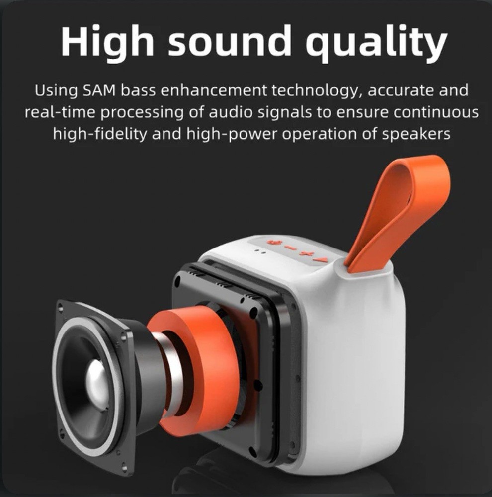 Bluetooth Speaker Model: Prince 1995II Bluetooth version: V5.2 Output power: 12W Play mode: BT/TF card Waterproof grade: IPX7 Signal-to-noise ratio: 80±2dB Distortion: ≤1% Connection distance: 10-25m(Open area) Playing time: 6-20 hours(varies by volume level and audio content) Charging time: about 2.5 hours Input power: Type-C 5V/1A Frequency response:80Hz-18KHz Size:85*96*53mm Weight: 282g