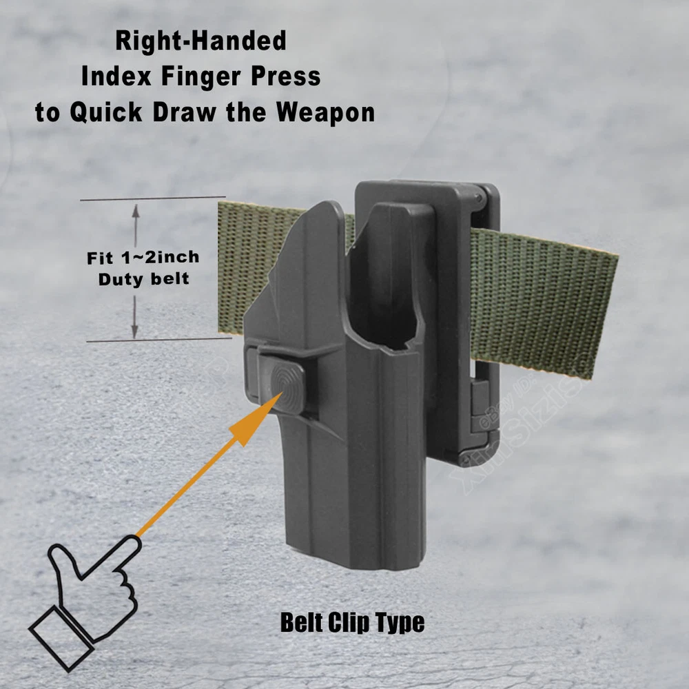 High Quality Military & Police Grade Polymer OWB Holster Specially Designed For Fast Draw During Duty Or Shooting Competition. Outside the Waistband Tactical Holster with belt clip attachment method Holster for Springfield Springfield XDS-9 3.3" 9mm Luger Springfield XDS-9 MOD.2 3.3" 9mm Luger Springfield XDS-9 MOD.2 OSP 3.3" 9mm Luger Springfield XDS-9 MOD.2 OSP 4" 9mm Luger Springfield XDS-40 3.3" .40 S&W Springfield XDS-40 MOD.2 3.3" .40 S&W Not fit Springfield XDS-45, XD Series (XD9, XD40, XD45), XD-M Series(9mm .40 .45) High Safety Level II Retention. It will automatically lock on the trigger when you put the weapon in, and makes a "click" sound to let you know that it is securely locked. Pull the weapon out quickly by pressing the button with your index finger. Excellent Design Made of military polymer material, easy to clean and maintain, so light to carry. Simple structure in the internal design. The protruding button makes it easier to touch and its skid proof stripe helps you recognize it through your sense of touch. Attachment 60 degrees tooth gear for omnidirectional rotation, feel free to wear on Web Belts within 2 inches and Duty Belts. Smooth backs are easier to slide into your belt, the back screws make it easier to remove and install accessories. Widely Used Daily concealed carry under your coat, and extreme temperature tolerance. Suitable for different places like military, courser, shooting coach, law enforcement agencies or personal protection use. Great for civilians and off duty officers. In the Package: · 1* Holster with Belt Clip Attachment · 1* Allen Key Shipping: Ships same day or next except Sundays and Holidays ! Free shipping! Ship by USPS First Class Package. 100% MONEY BACK GUARANTEE . any question please be free to contact with us .Thanks!