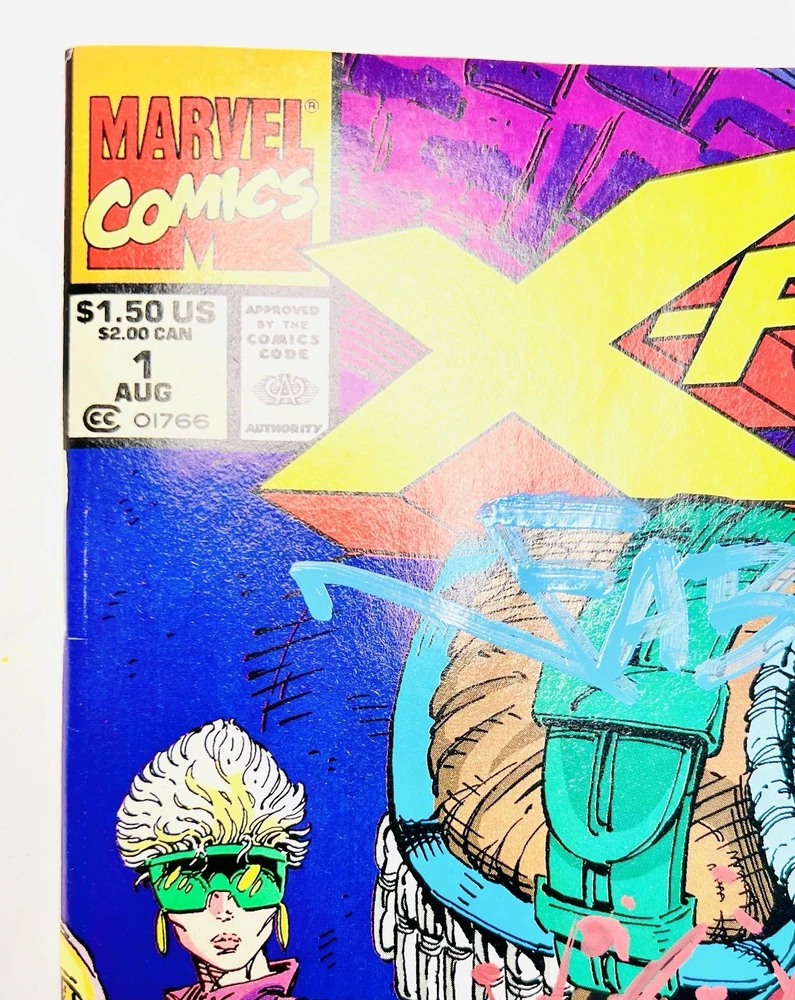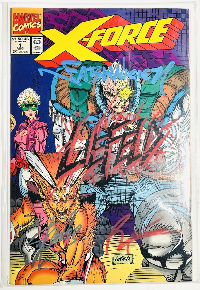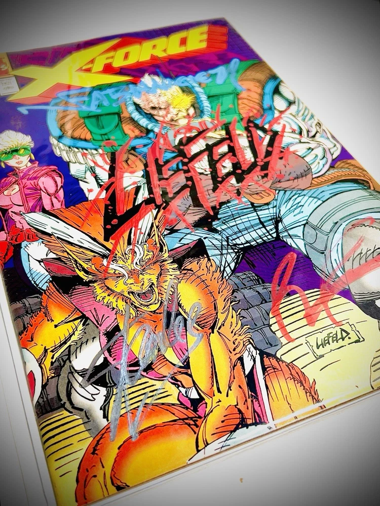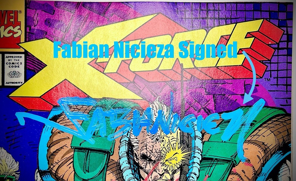The X-FORCE #1 comic book from August 1991 is a highly collectible item, featuring signatures from Stan Lee, Rob Liefeld, and Fabian Nicieza. This vintage single issue is part of the US Comics tradition and showcases the superhero team X-Force. With features like being a key issue, an early edition, boarded, and also including signatures from 3 literal legends in the comic industry, this comic is a must-have for fans of Marvel Comics and the X-Force series. The colorful cover, depicting the character Cable, adds to the appeal of this signed comic book that captures a piece of comic book history from the Copper Age era. If you’re a fan and collector of valuable signed comic books, then this item should in your watch list at bare minimum, but it would look so much better in your collection! Clean, crisp, signed, and ready for grading! This copy is very high grade, with minimal pressing (if any) it should do very well when slabbed! The signatures on this cover are just amazing! They are large, well placed, vibrant, and exactly what you want to see artists do with their autographs. Fabian Nicieza is a very well known letterer and artist in his own right, and his signature is done in a light blue, slighty glossy ink across the top portion of the cover. Nicieza doesn’t do much signings, so this one is rare and very special! Rob Liefeld has double signed this cover, and his blood spatter signature may very well be my favorite among all comic artists! Rob has done his original autograph in the bottom right in red ink. His spatter signature is front and center, large, bold, and colorful, and it just hits different than any other auto in my opinion. It’s not an easy or cheap version to obtain, so if you have the opportunity I would highly recommend getting it done by Mr. Liefeld on a key X-Force or Deadpool issue. And last, but absolutely not least, you will find the unmistakable Stan Lee’s infamous signature near the bottom left! It is done in a glossy chrome ink, which these pictures really don’t do justice. When the light reflects across Stan’s signature it is something to behold! And as we all know, this legendary man passed away a couple years ago, so getting a Stan Lee signature to add to your collection is going to become more and more difficult and expensive. So grab this awesome collectible quickly before too many eyes see it. Priced very fairly for a book of this caliber. I am open to all reasonable offers, and any lowballs will be ignored. Please note that there are no COAs included with this book. I purchased this as a part of a collection and these signatures were done in person at cons and at different times according to the owner’s widow. I examined them all carefully and they all seem to fit the proper form and flow, so I would venture to guess that they are all legitimate. However, opinion is somewhat irrelevant, as I’m not a trained expert in autograph authentication. I would recommend that you view the photos very carefully as well, do your research, and make an informed decision regarding the authenticity before you make a hasty purchase. Thanks for viewing!