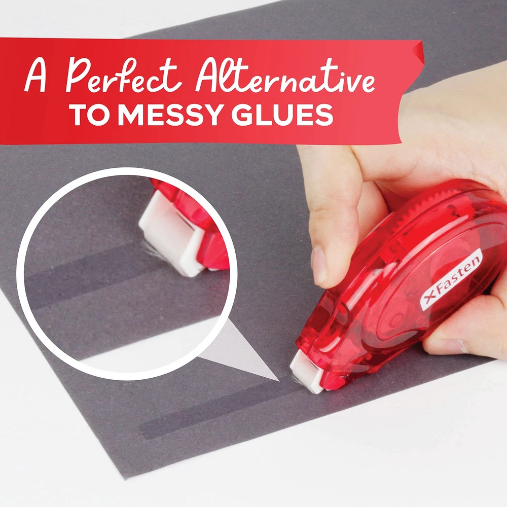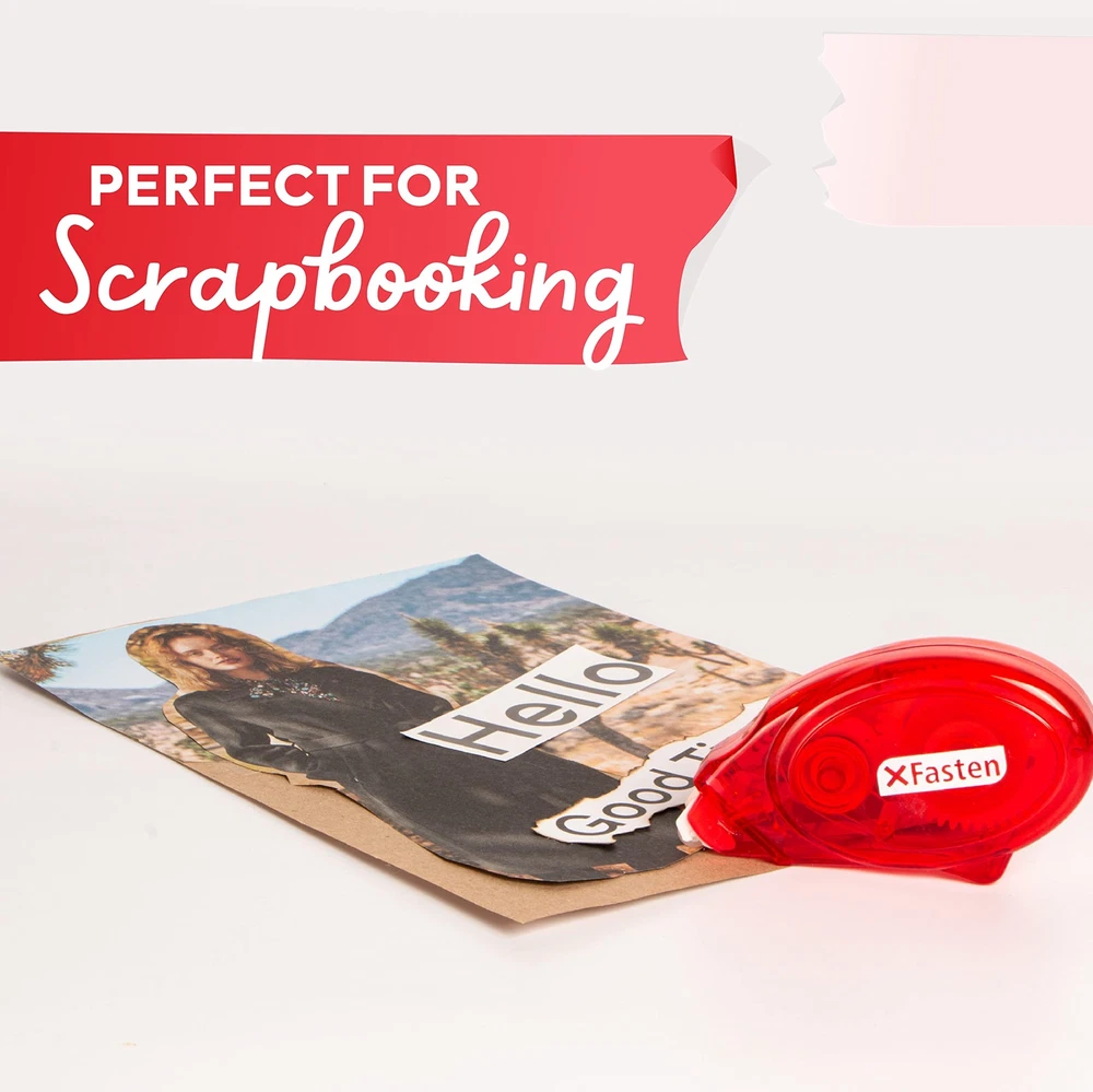 XFasten Double Sided Adhesive Scrapbook Runner Tape Roller, 0.3-inch by 360-I... Product Overview Size: 8-Pack, 0.3-inch by 360-Inch Color: Red Shell (Clear Tape) About The XFasten Adhesive Rollers Why Choose The XFasten Adhesive Rollers? Perfect for Scrapbooking These double sided tape dot applicators are perfect for scrapbooking because it's so easy to use and doesn't ruin your overall design. Smooth & Jam-Free Applicator It does not turn yellow, dry out or become gooey even after a long time - making it a perfect tape that's ready to use anytime. Clean & Mess-Free Application These are the double-sided adhesive tape runners for card making because it's easy to use and doesn't ruin your design. Residue-Free & Surface-Safe Strong enough to hold high density paper and kraft materials while still being residue-free, surface-safe, and mess-free. Previous page Next page 1 Test The Surface 2 Hold The Surface 3 Improve Strength Level Up Your Scrapbooking Game XFasten Adhesive Rollers The XFasten Adhesive Roller is a light-duty scrapbooking tape that is calibrated for home, office, and enterprise use. It features a jamming-resistant applicator that allows for quick dispensing and cutting of tapes - giving you more mileage over time. It's a welcome alternative to messy glues - especially for school and office work. Bring the XFasten Adhesive Roller anytime, anywhere. It has a protective tip cover to avoid the adhesive from sticking in your bag. How convenient! The XFasten Adhesive Rollers Collection Adhesive Roller Adhesive Roller Adhesive Roller Adhesive Roller Adhesive Roller Adhesive Roller Quantity 4 Rollers 8 Rollers 12 Rollers 24 Rollers 4 Rollers 8 Rollers Width 0.3" 0.3" 0.3" 0.3" 0.3" 0.3" Length 360" 360" 360" 360" 360" 360" Shell Color Red Red Red Red Red, Pink, White, Yellow Red, Pink, White, Yellow Adhesive Color Clear Clear Clear Clear Clear Clear Double Sided ✔ ✔ ✔ ✔ ✔ ✔ Features Acid free and archival safe double-sided adhesive tape roller that is ideal for scrapbooks, photos, and school projects. Equipped with a smooth and jam-free Adhesive Dot Roller Applicator that dispenses quickly without getting stuck, saving you time. Permanent and instant bonding. Ideal for school, gift wrapping, scrapbooking and home projects that require a clean and mess-free scrapbooking tape application. EMPOWERS average users to craft PROFESSIONAL-GRADE PROJECTS thanks to its clear surface and mess-free installation. The portable roller applicator operates smoothly without any jamming, cutting the time and effort required so that you can FOCUS MORE ON YOUR PROJECTS. Photo-safe and has a long storage and shelf life. Details Product Dimensions ‏ : ‎ 6.49 x 3.46 x 1.96 inches; 7.37 Ounces Date First Available ‏ : ‎ July 9, 2019 Manufacturer ‏ : ‎ XFasten Best Sellers Rank: #3,766 in Arts, Crafts & Sewing (See Top 100 in Arts, Crafts & Sewing) #50 in Arts & Crafts Tape #156 in Scrapbooking Adhesives #50 in Arts & Crafts Tape #156 in Scrapbooking Adhesives Customer Reviews: 4.2 out of 5 stars 2,183 ratings Quality Products Have peace of mind knowing that your order will arrive original factory sealed packaging. That means that you'll have the full force of the manufacturer's warranty to protect your purchase. Fast and Free Shipping You're already purchasing the item. Why pay additional for shipping, especially slow shipping? We get your order shipped out and delivered to your doorstep as quickly as possible. Commitment We are committed to making sure that you leave this transaction satisfied. That means having access to real people that get your questions and concerns answered quickly. Give us a shot and we will make sure that you will look to us again!
