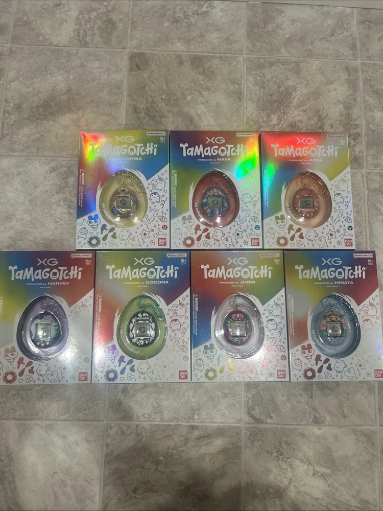 XG Original Tamagotchi Brand New Unopened Bandai Namco Full Set Of 7. XG XGALX Tamagotchi for all 7 members Chisa, Hinata, Jurin, Harvey, Juria, Maya, and Cocona. This listing would average each tamagotchi around $47.