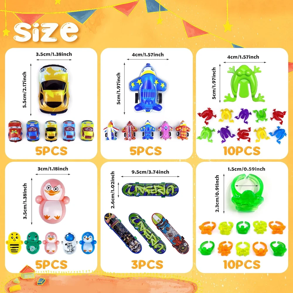 Store New Arrivals Add to Favorite View Feedback Contact XIPEGPA 70PCS Party Favors Toy Assortment for Classroom Rewards Bulk Toys Birthday Party Toys Goodie Bag Filler Treasure Box Gifts for Boys and Girls Description Brand XIPEGPA Material Plastic Country of Origin China Item Weight 0.27 Kilograms Theme Birthday Manufacturer recommended age 16 years and up Age Range (Description) Kid Occasion Birthday Package Dimensions 7.99 x 5.24 x 2.48 inches Manufacturer XIPEGPA PACKAGE:You will get 70pcs party favor toys in total:10pcs Jumping Frogs,5pcs Airplanes, 10pcs Blow outs, 5pcs Slap Bracelet, 5pcs Jump up Spring Toys, 10pcs plastic rings,5pcs Pull Back Car, 5pcs Pull Back Plane, 2pcs Mini Toys, 3pcs Finger Skateboards,5pcs Sticky Hands, 5pcs Mini Tumbler Toys. SIZE: Please see the picture for details. BULK PARTY FAVOR SET:12 sorts of party favor toys.The plenty of the quantity will meet your needs and the color of each toy is radom. WIDE APPLICATION: They are suitable for birthday party,classroom rewards,party giveaways,Christmas gifts,Halloween prizes and toys,home or school activities. GREAT GIFT:This party favor set is a great gift for your family and friends. These favors can effectively attract your little ones’ attention and expand their thinking.Let’s have some fun together. Product Description ABOUT US We offer the best prices around on high quality products. Our E-store includes media such as books, movies, music and games while offering electronics, toys, sporting apparel, clothing, tools, general home, garden items and more. SHIPPING We are always working hard to ensure your package arrives as soon as possible. Please understand that some factors like weather, high postal traffic, and the performance of shipping companies are outside of our control. We offer free shipping to the lower 48 states and ship within 2 business days of payment, usually sooner. We do not accept P.O. Boxes. Please provide a physical address. RETURNS We offer a 30-Day Return Policy on items which you are not completely satisfied with. You have the option for a full-refund or an exchange of the item. No returns are available on items shipped outside of the USA. PAYMENT We accept PayPal. CONTACT US This page content is yet to come Please ad us to your favorite seller and visit again later Thank You CUSTOMER SATISFACTION We try our very best to make sure every customer is completely satisfied. If there's a problem, message us! We're happy to help.