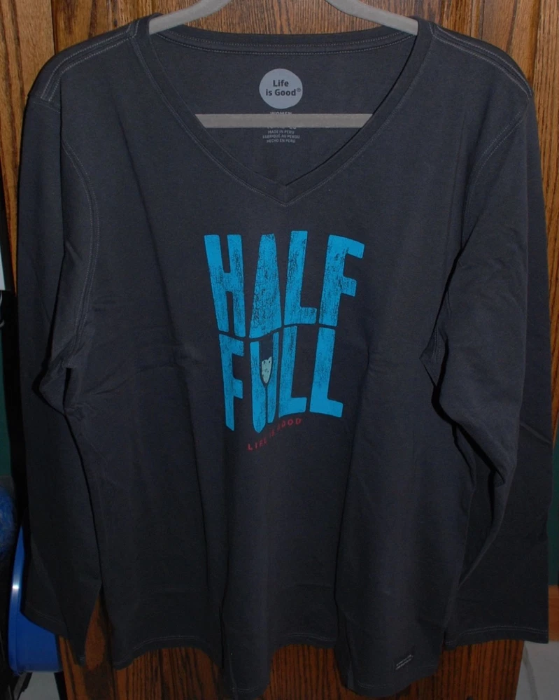 Women's Life is Good Classic Fit Long Sleeve Crusher Vee; ** Please note: The graphics on Life is Good tees are often made to look worn & faded "vintage". This is NOT a defect & they are not "used". This is the way that they are purposely made. "half full champagne" - night black New With Tags 30 day returns. The item must be returned in the same condition that it was sent out, so that there will be no restocking fees. Shipping is not refundable. If you have any questions about the policy, please ask prior to bidding. Keep in mind that the color you view on your screen may vary some from the actual item due to lighting, flash, & a difference in computer monitors. Also, some pictures may have been lightened so that the details of the item can be viewed. If you have any questions about the item, please do not hesitate to ask. I work full time, but I will answer all questions as soon as possible. I do have dogs. Smoke free home. International shipping is through ebay's “global shipping program”. Shipping fees & custom fees will be charged through them. Tracking & delivery confirmation is provided with all purchases. If you are happy with your purchase, leaving positive feedback would be greatly appreciated. If there is a problem with your purchase, please contact me before leaving negative feedback. Thank you!