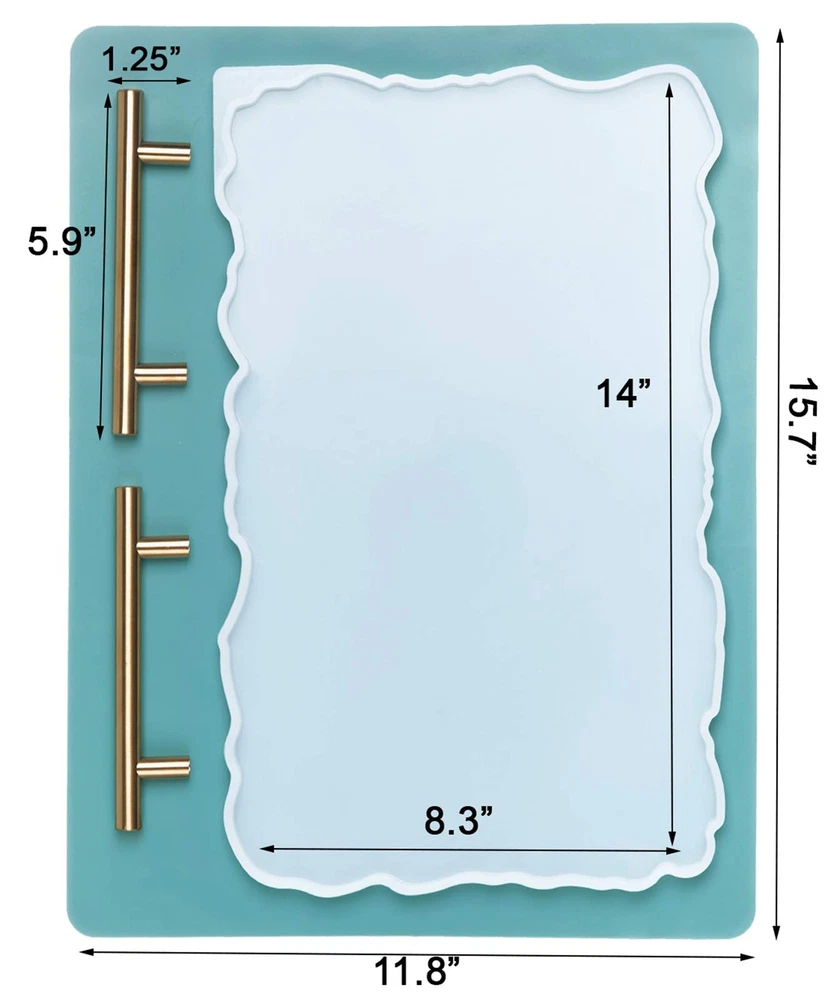 Why Choose ? Package comes with 1 Pcs Geode Agate Platter Mold and 2 Pcs Gold Handles along with an A3 extra large silicone mat (15.8 x 11.7 inches) to keep your craft table away from resin, epoxy, glue, glitter, paint, ink, oil, scratches etc., Made of high quality silicone, these epoxy resin molds are soft, thick and flexible, well resistant to tearing, hard to deform and fade, washable, pretty durable and reusable. You just need to twist the mold and release your creations when the resin is completely cured.The finished products are very shiny and scratch-free. Wash resin molds with warm soapy water after use and keep them away from heat and dust. Perfect DIY casting resin mold for making various faux agate serving tray, geode serving board, decorative home ornaments etc. How to Make a Resin Serving Board: 1. Pour resin into measurement cup, slowly stir to release bubbles. Adding any element like glitter, mica , liquid resin dye, dried flowers if you want. 2. Pour it into your mold and put the handles onto the appropriate position before the epoxy cured. 3. After for 24-48 hours, when resin completely solidify, you can release the resin out, and the beautiful sparkle tray is done. What You Get: 1 Pcs Geode Agate Platter Mold & 2 Pcs Gold Handles with an A3 extra large silicone mat (15.7 x 11.7 inches) to keep your craft table away from resin, epoxy, glue, glitter, paint, ink, oil, scratches etc., Agate Tray Molds: You could easily use our silicone resin molds to create natural and sparkly resin geode agate serving tray. MOLD SIZE:8.3x14x0.4inch. Wide Applications: These silicone molds for resin can be applied to make various faux agate serving tray, geode serving board, decorative home ornaments etc. Easy Demold Easy Clean: With our Resin casting molds made of premium quality silicone with features of thick, flexible and reusable, you just need to twist the mold and release your creations after the resin is completely cured. Wash resin molds with warm soapy water after use and keep them away from heat and dust. Warm Tip:1)The tray molds are suitable for casting resin only, not for coating resin. 2)The torch and heat is not recommended to use as the heat will damage the mold. 3) Put the handles on appropriate position before the epoxy gets thick(no screws needed).
