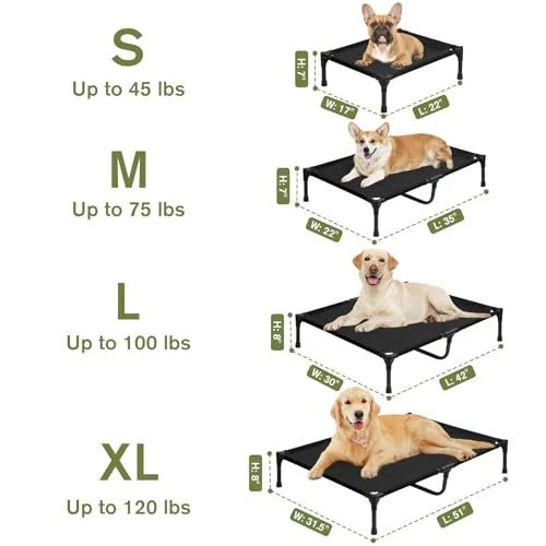 30 Days Return Policy Fast Delivery Trusted seller XL Elevated Dog Bed 51 Inch - Waterproof Raised Cooling Cot for 122lb Dogs, with Washable Breathable Mesh, All-Weather Outdoor Dog Bed with Non-Slip Feet, Black Product Description Year-Round Cooling and Comfort: The elevated dog bed is designed to keep your pet comfortable in all seasons. The raised design promotes airflow, helping dissipate heat in summer while preventing contact with cold, damp ground in winter. Sturdy & Safe Construction: Built with reinforced legs and a durable frame, this raised dog bed provides superior stability and long-lasting support. The non-slip design preventing unwanted movement and ensuring your pet can get on and off with ease and safe. Effortless Cleaning & Maintenance: Keeping your dog bed fresh has never been easier! The breathable mesh is dirt-resistant and easy to clean—simply wipe it down or rinse with water. The durable fabric prevents odor buildup, ensuring a hygienic resting space for your pet. Quick & Tool-Free Assembly: With a hassle-free assembly process,this cooling dog bed can be set up in minutes without any tools. This outdoor dog bed's lightweight frame makes it easy to move between indoor and outdoor spaces, offering your pet a cozy resting spot anyw in your home or yard. Perfect for Indoor & Outdoor Adventures: Whether your pet is lounging at home, enjoying a day in the backyard, or accompanying you on a camping trip, this portable dog cot is the ideal resting spot. Its lightweight design makes it easy to carry, ensuring your pet stays comfortable no matter w your adventures take you. Shipping Returns Payment Shipping Shipping is FREE to all addresses other than APO/PO boxes in the lower 48 states. All our stock ships from US-based warehouses. Shipped via USPS or UPS (depending on location and package weight) Unless stated otherwise, all orders will ship within 24-72 hours of your payment being processed. Check our feedback to see the great reviews of FAST shipping we offer. Returns As our valued customer, we will do our best to make sure the product you receive arrives to you on time and as expected. If you are not satisfied with your purchase, please contact us within 30 days of receiving your order to process a return. Payment We currently accept payment via eBay managed payments only. Once payment is cleared, we will dispatch your shipment within 1-3 business days. Please refer to the "Shipping" tab for more information regarding shipping speed to your destination.