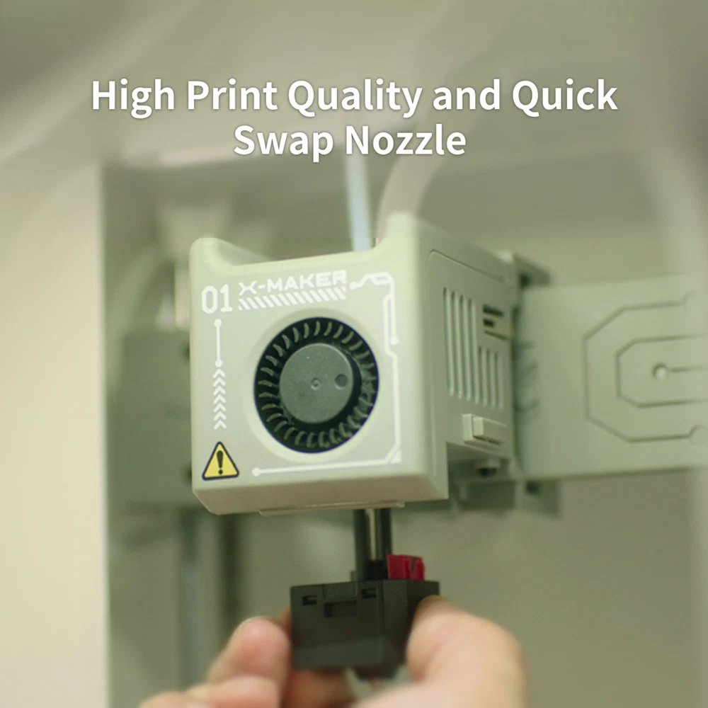 Features: [3D Print with Ease] Dive into 3D printing with ease using the X-MAKER JOY! Just one click through our smart app, and your creation begins. The intuitive software and user-friendly interface make it easy to design and print their creations, bringing their ideas to life. Our app is compatible with iOS, Android, and Windows platforms, making it accessible to everyone in your family. [High Print Quality & Quick Swap Nozzle] Top-notch print quality with the 3D printers big size and say goodbye to clogging with our quick-change nozzle system. This printer delivers precision at 0.05mm resolution and speeds up to 200mm/s, ensuring crisp, detailed models every time. Its quick-change nozzle system simplifies maintenance, enhancing your printing experience by keeping it efficient and hassle-free. [DIY Fun: Personalize Your Printer] Unlock personalization at its best with the X-MAKER JOY! This enclosed 3D printer features an innovative DIY interface that allows for the customization of the printer's appearance, letting express their unique style. By utilizing the DIY interface, users can apply and modify external decorations directly, making the printer not just a tool for creating 3D objects, but also a canvas for personal expression. [Capture Creativity: Built-In Camera ] Built-in high-definition camera. This advanced feature enables remote monitoring of the printing process via your smartphone, capturing every detail in real-time. The printer automatically generates time-lapse videos, allowing you to share the fascinating progression of your projects from start to finish. Celebrate and share your growth and imagination with friends and family. [Hassle-Free Setup: Effortless Connectivity] Simplify your printing experience with the 3D printer. This 3D printer features a leveling-free bed that automatically ensures the optimal distance between the nozzle and the printing surface, promoting consistent and high-quality prints. Additionally, it connects via Wi-Fi, providing stable and seamless connectivity. Forget about the hassle of complex setups. Unbox, connect and start creating with ease. Specifications: Product name: X-MAKER JOY 3D Printer Product Model: V4.0 Build Volume: 120x120x120 mm Nozzle Diameter: 0.4mm Nozzle Temperature: ≤265℃ Heatbed Temperature: ≤110℃ Supported Filaments: PLA ONLY Printing Technology: Fused Filament Fabrication (FFF) File Transfer: WiFi Printable File Format: Xcode / Gcode Software:X-PRINT slicer / X-MAKER App File Formats for Slicing: STL / OBJ UI Languages: Chinese / English User Interface: Simplified LED Indicator Print Speed: 120 - 300 mm/s Layer Resolution: 50 - 300 microns Filament Diameter: 1.75 mm App Design: AI Voice interface with kid-friendly design Model Library: Kid-oriented models with playful themes Design Tools: Basic design tools for easy creation Printing Features: One-click printing, enclosed design for safety Input: 100-120V~, 200-240V~, 50/60Hz, 1.6A USB2.0 Output: 5V 0.5A Rated Power: 60W Product Dimensions: 290x270x310 mm Package Dimensions: 340x360x410 mm Net Weight: 4.0 kg Gross Weight: 5.5 kg Note: Due to long-distance transportation, the Hotend (gray box) of the X-MAKER JOY may become dislodged from its slot, potentially affecting print quality. To ensure optimal performance, please follow these steps to reattach the Hotend:1. Turn off the power. 2. Unscrew the two screws above the Hotend. 3. Set the Hotend and screws aside. 4. Reinsert the Hotend into the correct position in the slot. 5. Tighten the screws to secure the Hotend. For a visual guide, please watch our video. Packing List: 1 x X-Maker JOY 3D Printer Kit