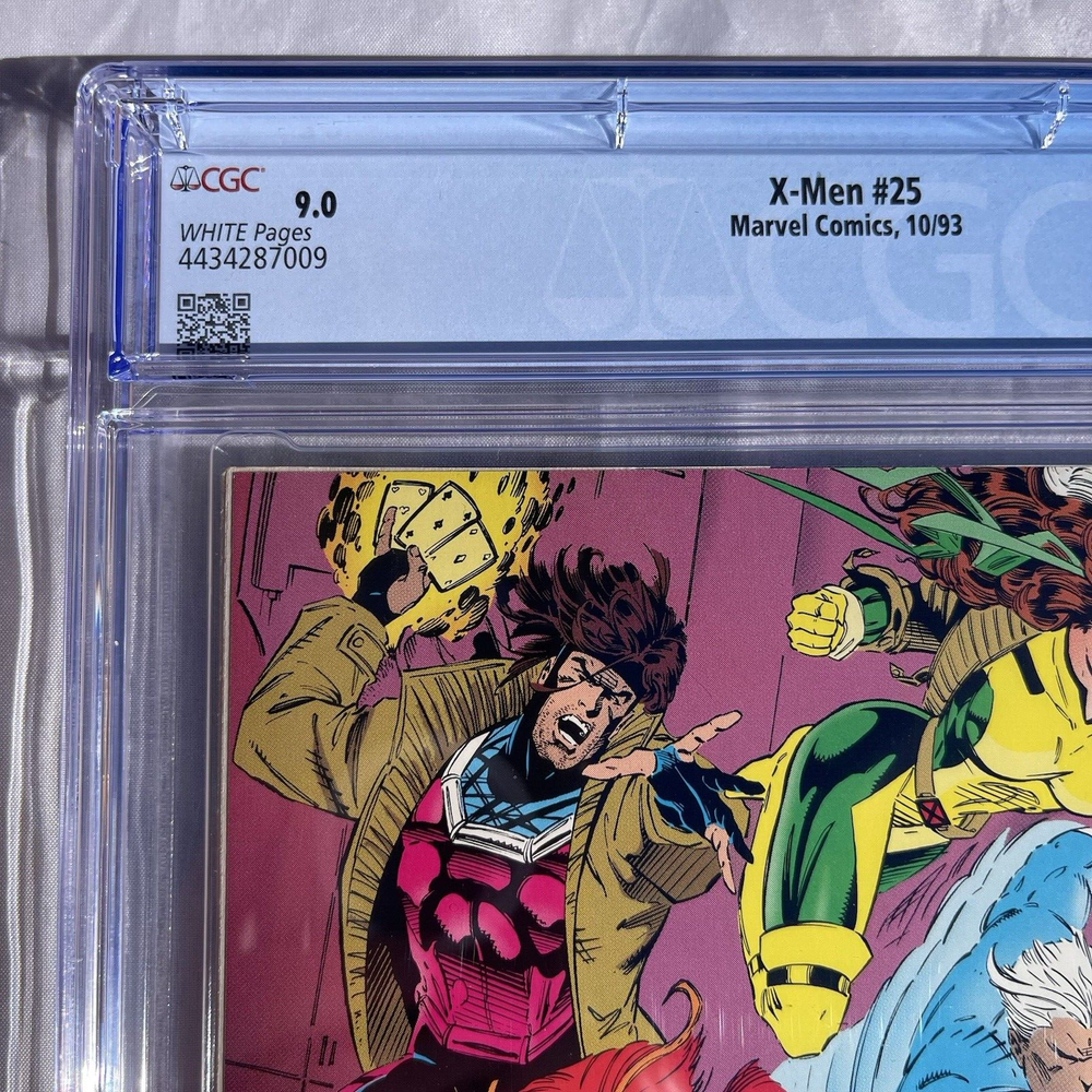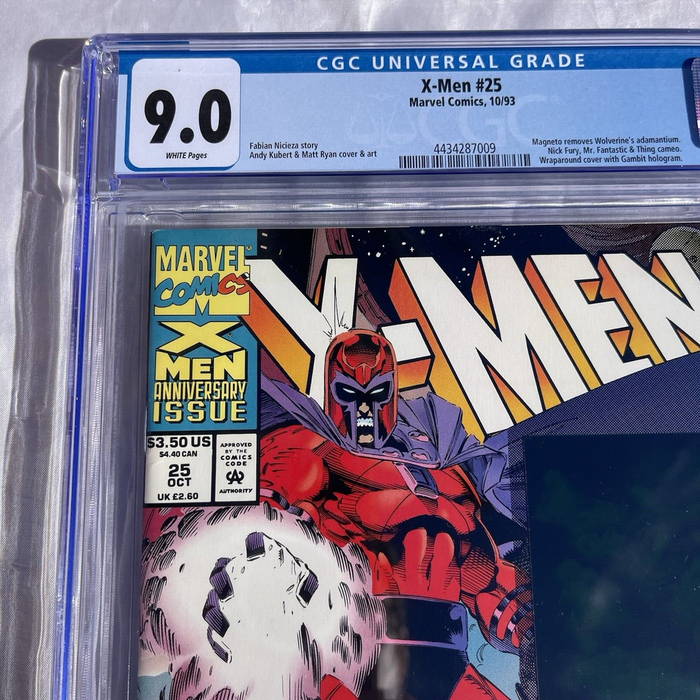 Marvel Comics X-MEN #25 CGC 9.0 Andy Kubert Cover Gambit Hologram. Magneto Removes Wolverine's Adamantium. Nick Fury, Mr. Fantastic and Thing cameo. CGC graded 9.0, some minor spine abrading, corner blunting, see photos.