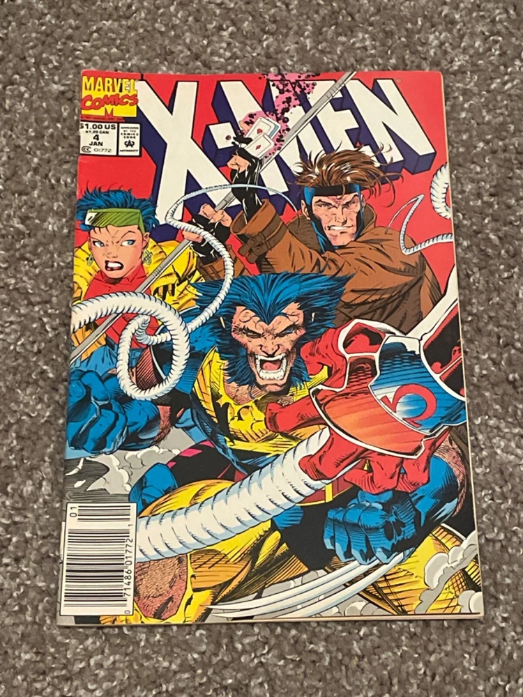 This is a highly sought-after comic book, X-Men #4, published by Marvel Comics in January 1992. It features an incredible creative team, including Scott Williams, Jim Lee, John Byrne, and Joe Rosas. The comic includes an impressive lineup of X-Men characters, such as Banshee, Omega Red (Villain, Introduction), Gambit, Matsuo Tsurahaba (Villain), Rogue, Beast, Omega Red, Magneto (Cameo Flashback), Jubilee, Andreas Strucker (Villains), X-Men Wolverine, Cyclops, Moira Mactaggert, The Hand (Villain), Fenris Andrea Strucker, Wolverine (Logan), and X-Men Professor X. The cover art by Scott Williams and Jim Lee is stunning, making this a must-have for any comic book collector. The comic is written in English and is part of the Modern Age (1992-Now) era.
