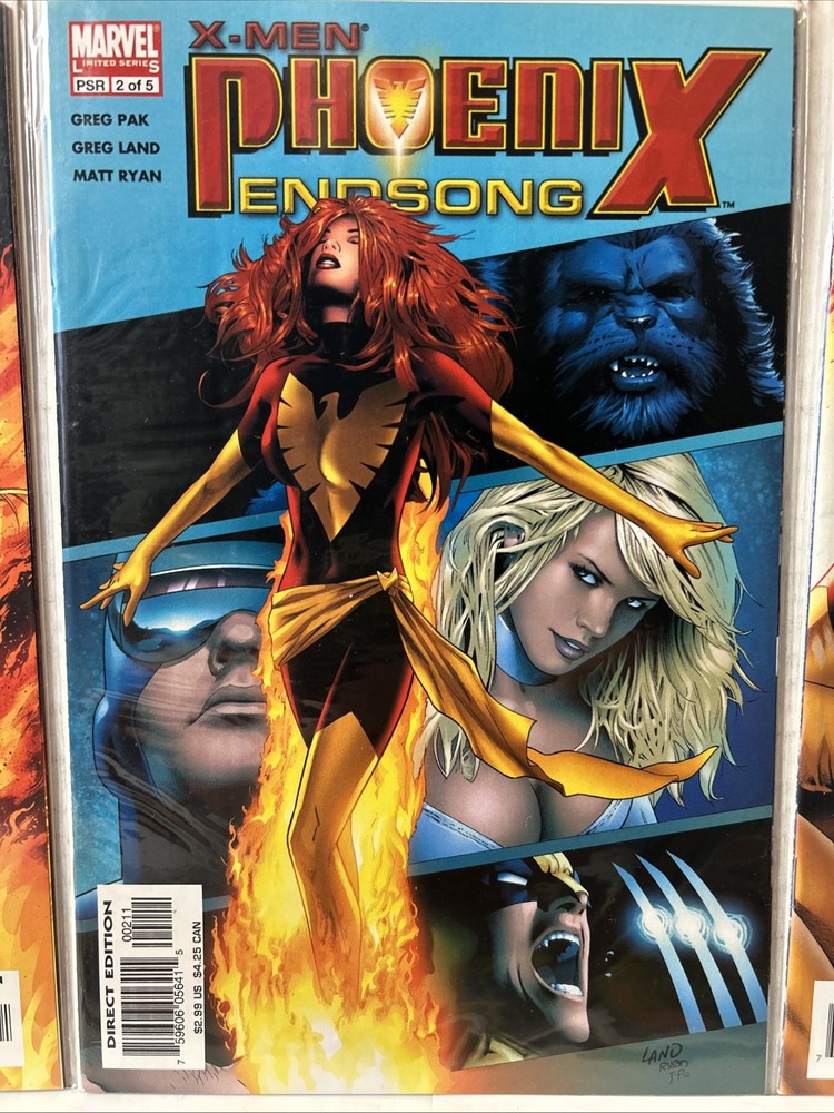Complete miniseries with variants 1, 2, 3, 3, 4, 4, 5 VF-NM Bagged and boarded The X-Men: Phoenix Endsong #1-5 comic book mini-series, published by Marvel Comics in 2005, features a colorful and action-packed storyline within the Marvel Universe. With a focus on the X-Men superhero team, including characters like Phoebe, Storm, and Professor X, the series is highlighted by the presence of iconic characters such as Wolverine and Emma Frost. The set includes first printings of each issue, making it a valuable and collectible item for fans of the X-Men franchise.