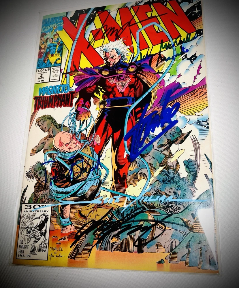 The X-Men Vol. 1 No. 2 comic book from 1991, featuring iconic Marvel characters such as Magneto, Wolverine, Professor Xavier, Beast, Storm, Gambit, Rogue, Cyclops, and many more is a highly sought-after collectible item for fans of the X-Men universe. This single issue, signed by renowned figures Stan Lee, Scott Williams, Jim Lee, Chris Claremont, Patrick Stewart, and Ian Mckellen. It holds significant value due to its key issue status and unique features. With a colorful style and English language format, this comic book is a must-have for any X-Men enthusiast looking to own a piece of Marvel's (MCU) history.