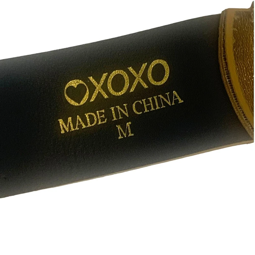 XOXO Rhinestone Belt Buckle Dark Gold Medium Studded Faux Leather Width 1 in Length 30 in Excellent Preowned Condition except for separation of layers at one point. See photo, Sold as is.