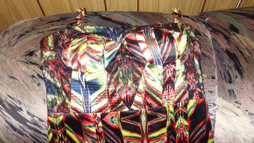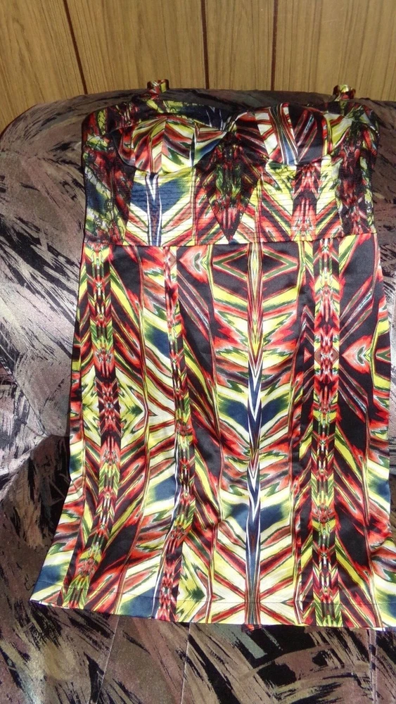 Look fabulous in this XOXO psychedelic print sun dress! The dress is made of polyester and spandex fabrics, with a silky satin texture. The knee-length dress comes in size 9/10 and features a halter neckline with adjustable straps and a zip closure. The sleeveless dress has a built-in bra and comes in a colorful multicolor pattern, making it versatile for any occasion. This dress is perfect for all seasons and can be dressed up or down depending on the occasion. It is not just a dress, but an experience you will love. The XOXO dress is a juniors size, suitable for women who want to look stylish and fashionable. Don't miss out on this dress that was made in China and is perfect for any woman who wants to stand out in a crowd.