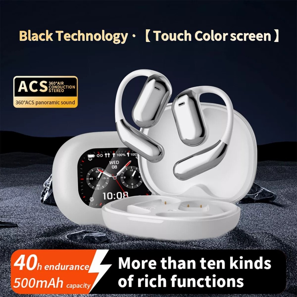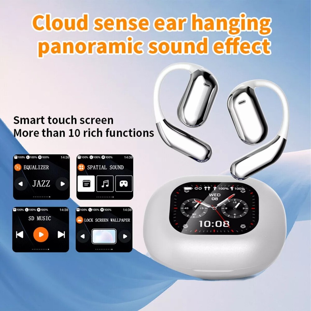 Product Description Features: 1.LCD full-color display, rich function and one-finger control. 2. Noise reduction method to reduce external noise interference. 3. Low latency, more accurate when playing games. 4. Hanging headphones, comfortable to wear, zero-feeling to wear, immersive experience 5. Intuitive touch function, accurate identification, and prevention of accidental touch. 6. One-button operation, convenient to operate various functions. 7. High-precision speakers, audio-level surround sound 8. Large-capacity battery can last for a long time. Product parameter: Bluetooth version: V5.4 Talk time: 6 hours Music playback: 6 hours Standby time: 80 hours Communication distance: ≥10m Headphone charging time: about 1.5 hours Headphone battery capacity: 40mAh Battery capacity of charging bin: 500mAh Frequency range: 2.40GHz-2.48GHz Support protocol: A2DP 1.3/HFP1.6HSP1.2/AVRCP1.6/D11.3. Screen functions: music control, spatial sound effect, volume adjustment, wallpaper replacement, screen brightness, sound effect customization, environmental sound effect, flashlight function, language switching, earphone searching, stopwatch function, local music. Product list: Headphones+electrical cabinet *1 Charging line *1 Instructions *1 Payment Returns Contact Us Shipping Feedback 1. We only accept eBay payments. 2. All payments must be made within 3 days after auction won. Item may be returned for refund or replacement within 30 days of the purchase date. Returned merchandise must be unused, in original packaging and include all accessories. Shipping costs are non-refundable. Please do not hesitate to leave us your 5 Star ★★★★★ of DSR positive feedback if you are satisfaction with our products ,delivery or services . If you have Any Questions Or Unsatisfied with your purchase, please Email us firstly to get a better solution before you leave a neutral or negative feedback, we work hard to make sure every customer 100% satisfied and resolve anyproblem for you. Please email us first in the following situations: 1.The item can't work properly. 2.The item broken on the post. 3.You bought or received the wrong items. 4.You have not received your shipment within the period. 5.Before you give us Negative feedback. 6.Before you open a case/return on eBay. All questions will be replied within 24 hours (Except Saturday and Sunday or holidays). Thank you for your kindness! 1. eBay Payments Confirmed Addresses Only. 2. No Delivery to Alaska and Hawaii or PR. 3. No P.O. Box and APO/FPO Delivery. 4. Tracking Number will be provided. 5. Domestic shipping is within the 48 Contiguous States of United States, the delivery time is between 2 and 8 days. Items will be shipped by UPS, USPS or Fedex within 3 business day after receiving full payment. 6. International shipping is from China, the delivery time is between 10 and 30 working days. As a seller , Positive Feedback is very important to us. We try our best to let our customers to be happy. If you have any question about your order, please contact us ,please let us know before you Leave the Negative feedback ,We are willing to do our best to make up for it, Thank you very much ! Payment 1. We only accept eBay payments. 2. All payments must be made within 3 days after auction won. Returns Item may be returned for refund or replacement within 30 days of the purchase date. Returned merchandise must be unused, in original packaging and include all accessories. Shipping costs are non-refundable. Please do not hesitate to leave us your 5 Star ★★★★★ of DSR positive feedback if you are satisfaction with our products ,delivery or services . Contact Us If you have Any Questions Or Unsatisfied with your purchase, please Email us firstly to get a better solution before you leave a neutral or negative feedback, we work hard to make sure every customer 100% satisfied and resolve anyproblem for you. Please email us first in the following situations: 1.The item can't work properly. 2.The item broken on the post. 3.You bought or received the wrong items. 4.You have not received your shipment within the period. 5.Before you give us Negative feedback. 6.Before you open a case/return on eBay. All questions will be replied within 24 hours (Except Saturday and Sunday or holidays). Thank you for your kindness! Shipping 1. eBay Payments Confirmed Addresses Only. 2. No Delivery to Alaska and Hawaii or PR. 3. No P.O. Box and APO/FPO Delivery. 4. Tracking Number will be provided. 5. Domestic shipping is within the 48 Contiguous States of United States, the delivery time is between 2 and 8 days. Items will be shipped by UPS, USPS or Fedex within 3 business day after receiving full payment. 6. International shipping is from China, the delivery time is between 10 and 30 working days. Feedback As a seller , Positive Feedback is very important to us. We try our best to let our customers to be happy. If you have any question about your order, please contact us ,please let us know before you Leave the Negative feedback ,We are willing to do our best to make up for it, Thank you very much ! Ear Buds Earbuds Bluetooth Wireless Air Buds Ear pods HD Headphones LED Headset 13.99 USD 1.99 USD Wireless Bluetooth Headset Noise Canceling Dual Microphone Earpiece Earbuds 11.89 USD 1.99 USD Bone Conduction Headphones Bluetooth 5.2 Wireless Open-Ear Earbuds Sport Headset 13.99 USD 1.99 USD Bluetooth 5.2 Headset Wireless Earbuds Earphones Stereo Headphones In-Ear 13.99 USD 1.99 USD Brand New Bone Conduction wireless Earphones Headset Sport Bluetooth Headphones 13.49 USD 1.99 USD Bluetooth Earbuds Headset 5.2 Wireless Noise Cancelling TWS Trucker Waterproof 23.49 USD 3.99 USD Bone Conduction Bluetooth Headphones Wireless Sports Running Bone Conduction 33.49 USD 70.0 USD Translator Earbuds 144 Languages Two Way Real Time Bluetooth Online Translation 23.49 USD 70.0 USD Wireless Headphones Bluetooth Noise Cancelling Stereo Earphones Over Ear Headset 26.99 USD 3.99 USD Wireless Bluetooth 5.