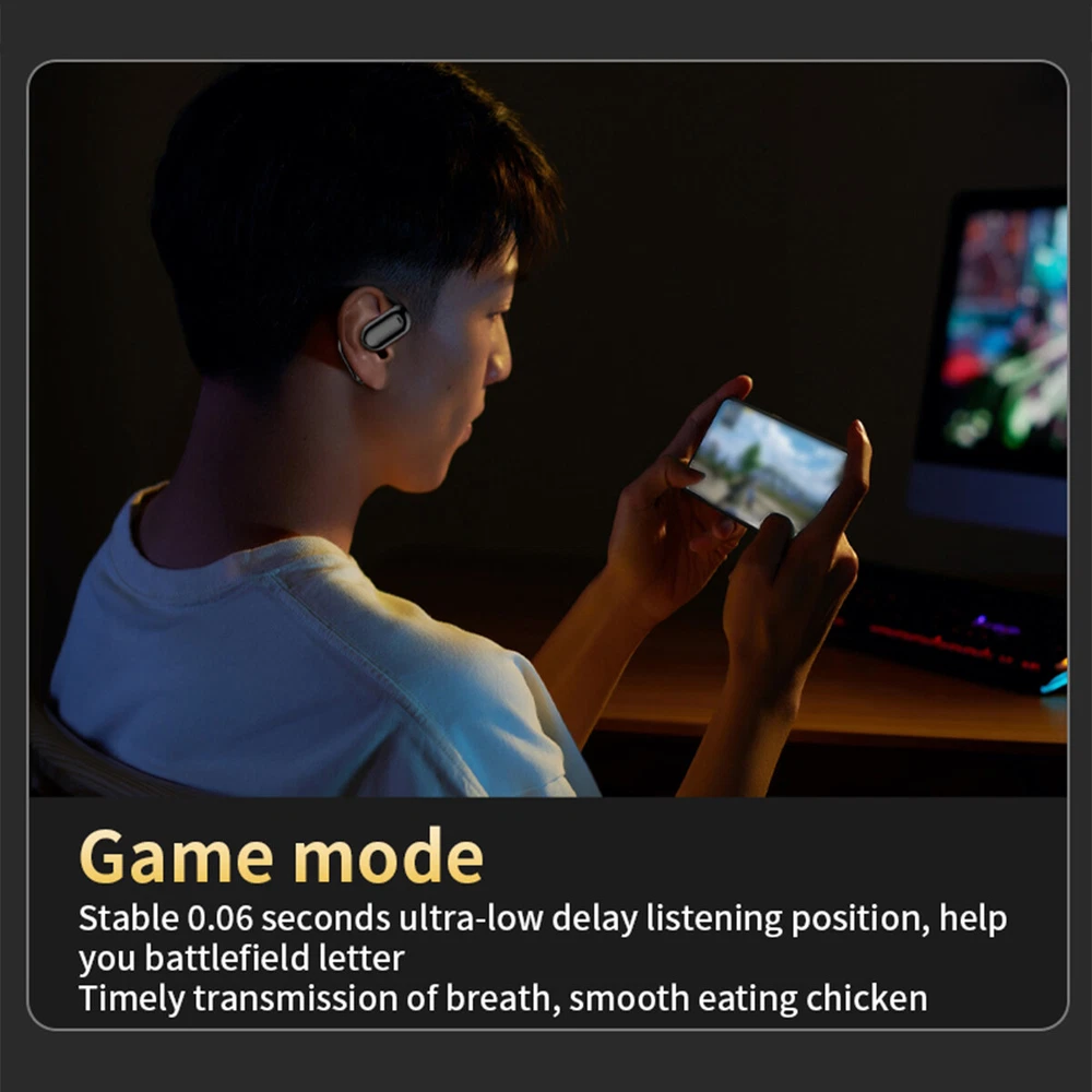 These earbuds are a game-changer! The open-ear design is super comfortable, and the noise reduction works like magic—clear sound without blocking everything out. The touch controls are smooth and responsive, and the low latency makes gaming feel ultra-immersive. The sound quality is crisp with deep bass, and the battery lasts forever. Love the sleek LCD display for quick settings. Perfect for all-day wear without any ear fatigue. Highly recommend!