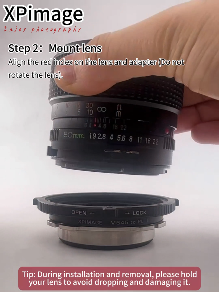 Lens: Compatible with Mamiya 645 mount lenses Camera: Compatible with PL mount Super 35 camcorders IMPORTANT NOTES: Dual functionality: Normal without focal reducer; 0.71x focal reduction with component installed Electronic aperture control not supported Manual focus only; No lens EXIF data transmission KEY FEATURES: 0.71x Focal Reducer – Reduces crop factor by 0.71x for wider field of view +1 EV Exposure Gain – Increases exposure by approximately +1 EV for shallower depth of field Flange Locking Mechanism – Threaded flange-locking structure ensures secure, shake-free installation Precision Infinity Focus – CNC machined and assembled for accurate focus at infinity Premium Metal Construction – Stainless steel and aluminum alloy for durability and light weight Anti-Reflective Coating – Matte black interior minimizes flare and ghosting Hard-Anodized Finish – Enhanced wear and corrosion resistance Unique Identification – Each adapter has a unique ID number For any questions regarding product use, please see the tutorial video or leave a message for help.