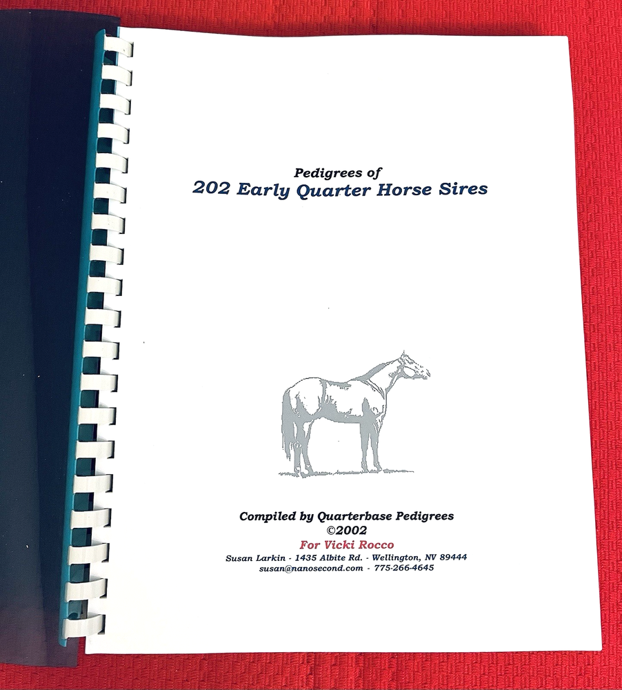 ~ *** ~ * * FREE SHIPPING ON ALL ITEMS! * * ~ *** ~ _________ * * * bitbybit_equine An eBay Seller Since 1999 (27 Years) * * * ___________ ~ *** ~ WOW!! I'VE LISTED NUMEROUS "QUARTER HORSE", AND PAINT, "PEDIGREE BOOKS". YOU'LL FIND A COMPLETE LIST, OF THEM, AT THE BOTTOM OF THIS LISTING. TAKE A L@@K ... YOU'LL BE GLAD YOU DID! ~ *** ~ ______________ EXTRA RARE! ~ Quarter Horse Pedigrees ~ "202 EARLY QUARTER HORSE SIRES" BY "QUARTERBA SE PEDIGREES" - DETAILS - 🔺 CONDITION IS LIKE NEW! 🔺 TITLE Pedigrees of "202 EARLY QUARTER HORSE SIRES" 🔺 COMPILED AND PUBLISHED BY "Quarterbase Pedigrees" 🔺 8 GENERATION PEDIGREE 🔺 YEAR PUBLISHED: 2002 🔺 COVER: Soft-Cover 🔺 SIRES REFERENCED (In Alphabetical Order) • A • Ashwood • B • Babe Cody, Badger Trouble, Balmy L, Band Play, Barney McCue, Bartender II, Bear Hug, Bee Line, Ben Hur I, Ben Jay, Bert Benear, Bert, Bill Cody, Billy Clegg, Billy McCue, Billy Sunday, Billy The Kid M, Billy Van, Blackburn, Blue Rock, Bob Randle, Boomer, Brush Mount, Buck Thomas, Buckshot McCue, Buddy Dexter, Bull's Eye • C • Candy Kid, Candy, Catechu, Champagne, Chicaro Bill, Chico, Chief, Chubby, Clabber, Claude, Coke T (Prince), Colonel Clyde, Cotton Eyed Joe, Cowboy H, Cowboy, Cripple Mount, Cuellar • D • Dan Waggoner (w/Full Pg Photo), Del Monte, Dock, Dodger I • E • Ed Echols • F • F &H Bill Thomas, Firebrand Reed w/Full Pg Photo), Flying Bob • G • Garcia Silvertone, Gold King Bailey, Gold Mount, Golddust Shoemaker, Grano De Oro, Grey Badger II, Grey Badger III, • H • Handy Shot, Hank H, Harlan, Harmon Baker, Hickory Bill, Hiredhand's Cardinal • I • No Horses Fall Under This Designation. • J • Jess Hank, Jess Hankins, Jimmie Allred, Jimmie Reed, Jodie The Tuff, Joe Bailey, Joe Bob, Joe Cody, Joe Harrell, Joe Moore, Joe Reed II, Joe Reed, John Wilkens, Johnny Dial • K • King (w/Full Pg Photo), Kingwood • L • Leo, Leo San, Leo Tag, Levan, Lightning Bar, Little Hickory I, Little Jazz, Little Jodie, Little Joe Springer, Littlejoethewrangler (Little Joe The Wrangler), Little King, Little Tom B, Lucky Blanton, Lucky Jim • M • Macanudo, Magician, Mark, Midnight, Midnight Jr, Monte, Music Mount, My Pardner, My Texas Dandy • N • Nevada King, Nick Shoemaker, Nick W, Norfleet, Nowata Star • O • Oklahoma Star, Oklahoma Star Jr, Old Red Buck, Osage Star • P • Parker's Chicaro, Parker's Trouble, Paul A, Paul E II, Pay Day, Pep Up, Peppy, Peter McCue, Plaudit, Poco Bueno, Poco Tivio, Power Command, Pretty Boy • Q • Question Mark, Quicksilver King • R • Rainy Day, Ready Money W, Red Bug 2, Red Dog, Red Joe Of Arizona, Red Lantados, Redwood, Reed McCue, Revenue, Rey, Rey Del Rancho, Rialto, Roan Wolf (w/Full Pg Photo), Robin Boy, Rondo Oklahoma, Rowdy • S • Sam Watkins, San Siemon, Scharbauer's King, Scooter W, Scroggins Littlestar, Seco King, Sergeant, Showdown, Silver King, Sizzler, Skipper W, Smokey Moore, Smoky T, Smuggler, Sobre (w/Full Pg Photo), Spark Plug, Sport, Star Deck, Starway, Sugar Bars • T • Texas Dandy, The Deuce, Tinky Poo, Tip Top, Tommy Clegg, Tonto Bars Gill, Tony Waggoner • U • No Horses Fall Under This Designation. • V • Vandy • W • Waggoner's Rainy Day, War Star, Wayward Irving, Wilda Boy, Wimpy, Wimpy II • X • No Horses Fall Under This Designation. • Y • Yellow Jacket • Z • Zandy, Zantanon *PLEASE NOTE* This is Strictly a "PEDIGREE BOOK". There are NO PHOTOS Except for the 5 Photos Noted, Above, in the "Pedigree List" Please See All Photos as they are Part of the Description . ~ *** ~ ~ PLEASE NOTE ~ I try to be very thorough, in my descriptions, of the Items I list. If you should need further info feel free to email me and I will get back to you ASAP. Thank You, Vicki ~ *** ~ PLEASE READ COMPLETE DESCRIPTION ... AND ... SEE PHOTOS FOR CONDITION ... PLUS ... ASK QUESTIONS BEFORE BIDDING ~ *** ~ WANT PEDIGREE BOOKS? ... ARE YOU A QUARTER HORSE BREEDER? ... WANT TO DIG DEEP INTO YOUR QUARTER HORSES', OR PAINT HORSES', BACKGROUND? ... ... ARE YOU LOOKING FOR " THE ABSOLUTE BEST " IN QUARTER HORSE, OR PAINT HORSE, PEDIGREE BOOKS? ... WELL, LOOK NO FURTHER ... I HAVE 'EM!! ... These "PEDIGREE BOOKS" are EXTRA RARE and in NEW CONDITION!! These Books Are From My Personal Collection. I Purchased them Direct from "Quarterbase Pedigrees" (Susan Larkin). I met Susan when she, and I, bought babies from the same Ranch, at the same time, in 2002. I have NEVER OFFERED THESE BOOKS FOR SALE, BEFORE NOW, AND ONCE THEY SELL I WILL NOT HAVE MORE! ... I, No Longer have my horses ... Therefore, it's time to let another Quarter Horse Lover have Access to these EXTRA RARE, and ABSOLUTELY NEW CONDITION, " PEDIGREE BOOKS ". ♦️ "PEDIGREE BOOKS" LISTED ♦️ ... I Have ONLY 1 of Each Book ... ~ QUARTER HORSES ~ • Pedigrees of "QUARTER HORSE HALTER SIRES" • Pedigrees of "LEADING REINING HORSE SIRES" • Pedigrees of the "KING RANCH" QUARTER HORSES & THOROUGHBREDS • Pedigrees of "NCHA HALL OF FAME CUTTING HORSES" • Pedigrees of " PROMINENT QUARTER HORSE SIRES OF CUTTING & COWHORSES" - VOL. I • Pedigrees of " PROMINENT QUARTER HORSE SIRES OF CUTTING & COWHORSES " - VOL. II • Pedigrees of "202 EARLY QUARTER HORSE SIRES" • Pedigrees of "AQHA ALL-TIME LEADING DAMS OF NCHA MONEY EARNERS" • 12 GENERATION PEDIGREE AND ADDITIONAL INFORMATION FOR Un-Named 2003 AQHA Filly AQHA Sire: Royal San Sonita AQHA Dam: Peppys Red Pine (I Ordered this Book prior to Purchase of this Filly) ___________________________ ~ PAINT HORSES ~ • "EXTENDED PEDIGREES OF MODERN PAINT SIRES" Over 100 8-Generation Pedigrees of Well-Known Paint Sires • 12 GENERATION PEDIGREE AND ADDITIONAL INFORMATION FOR THE 2002 APHA Filly "Sucha Barbie Doll" AQHA Sire: Sucha Fistful APHA Dam: Sheza Racket (I purchased her as a Yearling.) • 12 GENERATION PEDIGREE AND ADDITIONAL INFORMATION FOR THE 1989 APHA Gelding "Scootin Scotti" (I Purchased him as a Yearling.) APHA Sire: Impressive Titan APHA